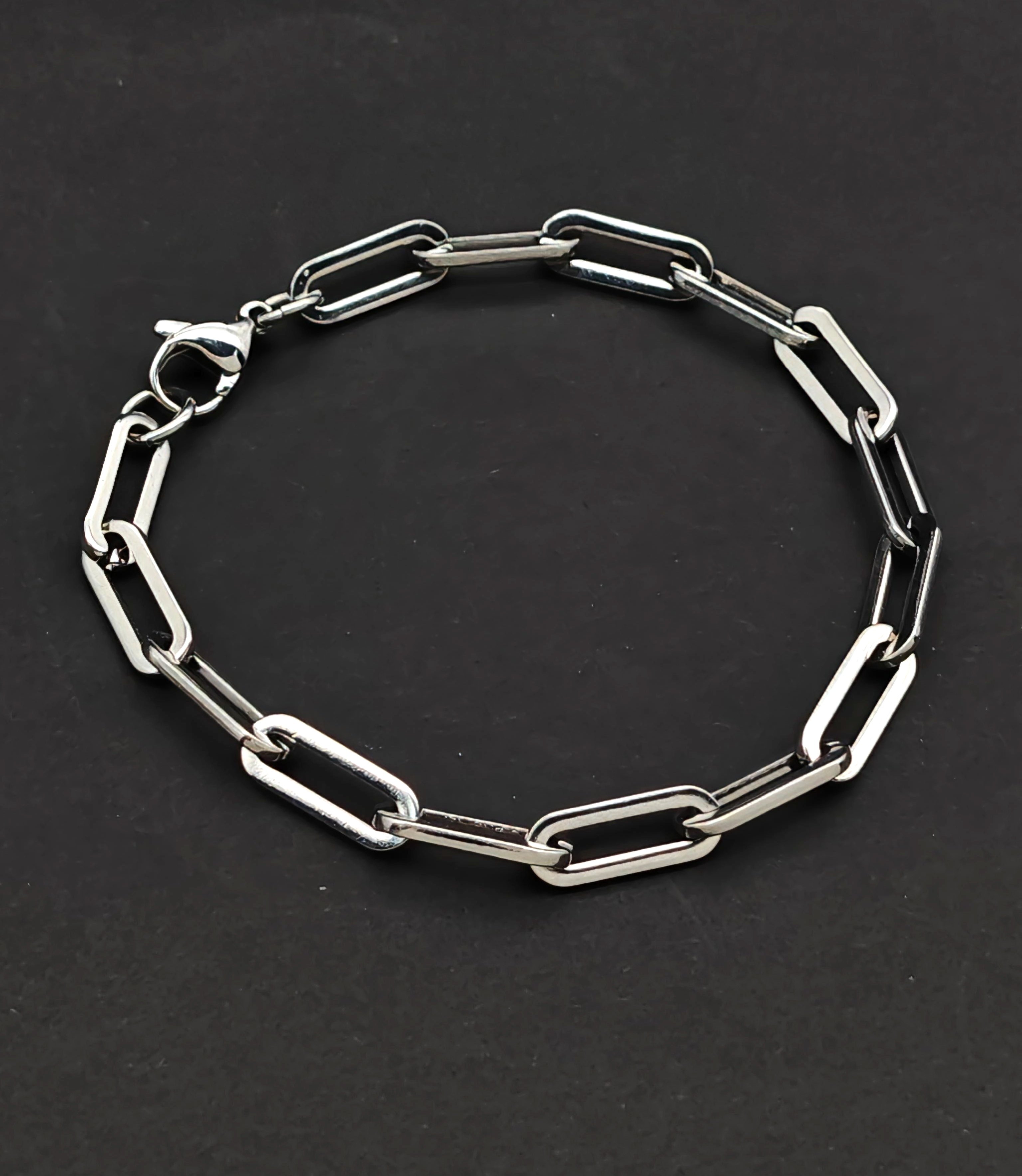 5.5mm光令鋼色扁橢圓形鏈手鏈(B853S) Steel Polish 5.5mm Paperclip Link Chain Bracelet