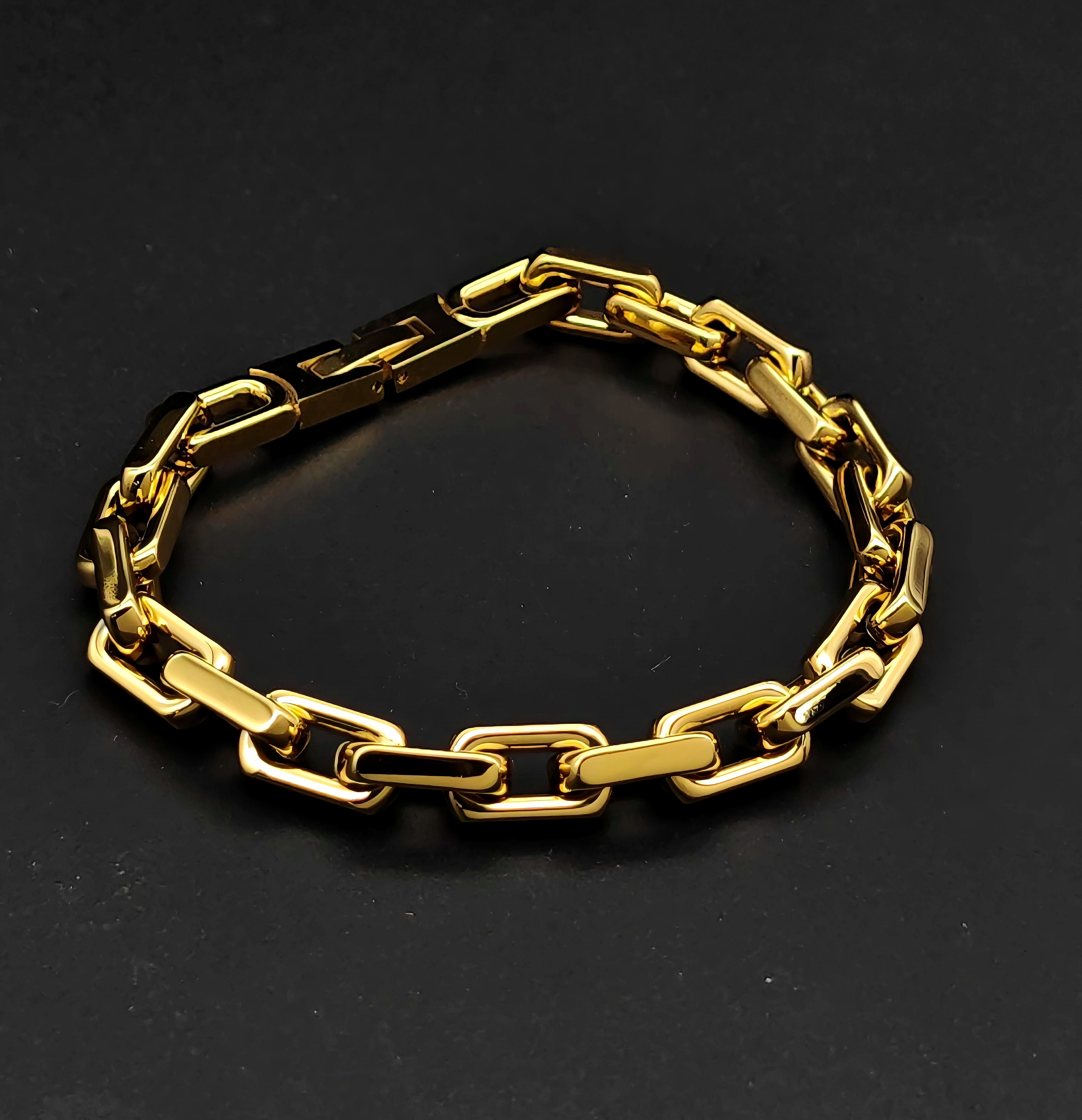 7mm光令金色長方珠手鏈(B598G) 7mm Gold Polish Elongated Link Bracelet
