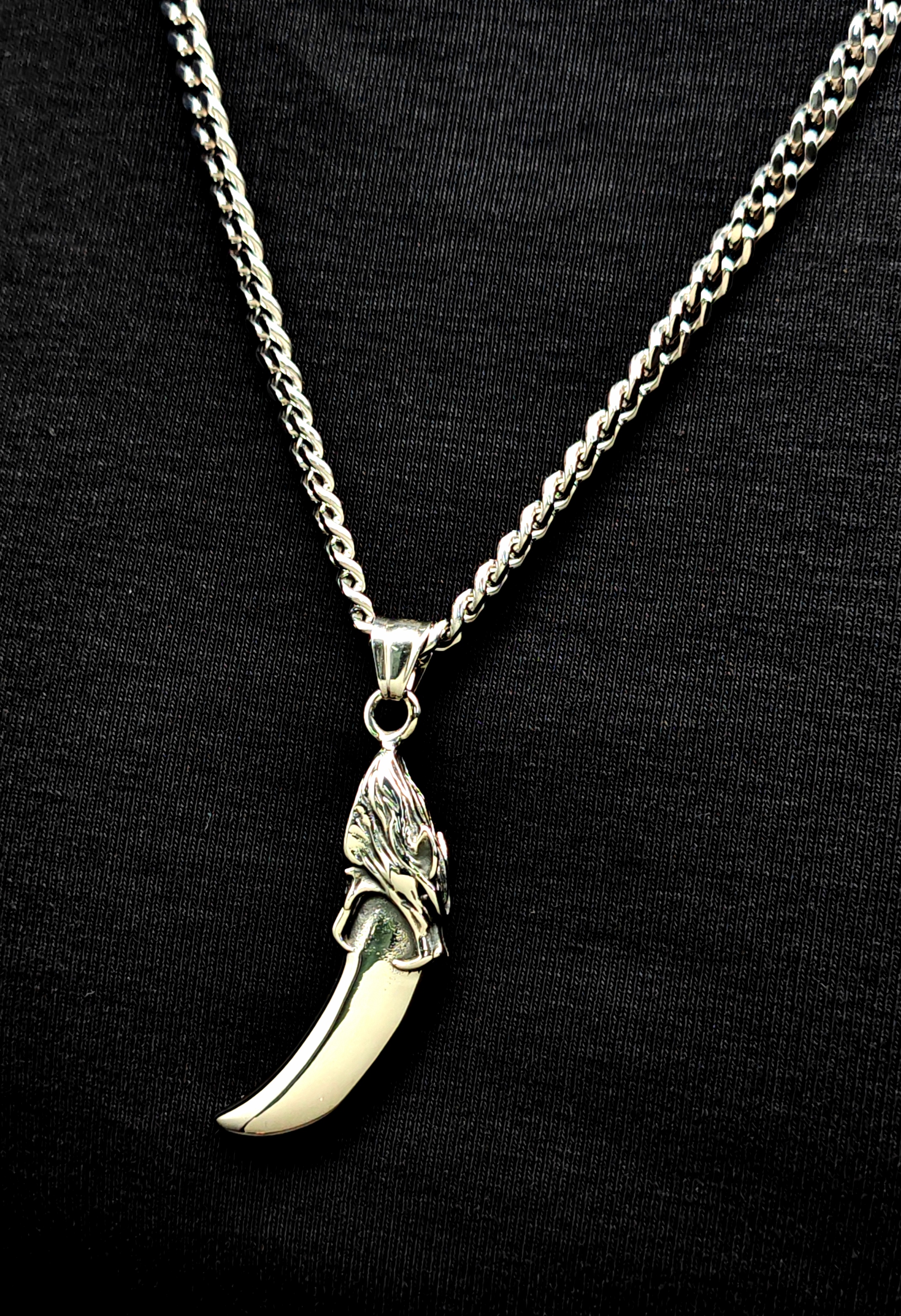 不銹鋼18mm鋼色狼牙吊咀頸鏈(N859S)Stainless Steel 18mm Wolf Teeth Necklace