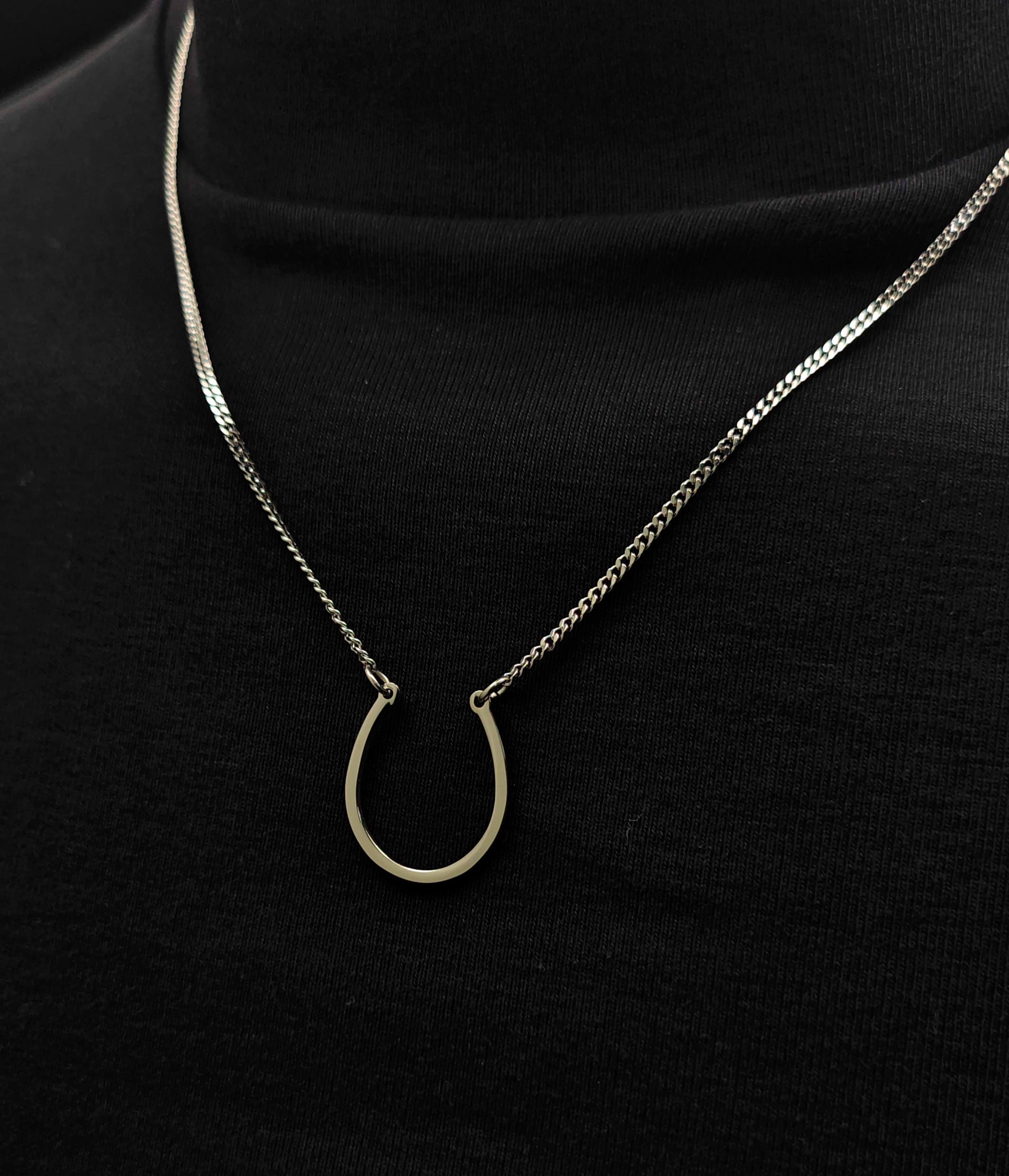 光令鋼色馬蹄鐵吊咀頸鏈(N856S) Steel Polish Horse Shoe Pendant Necklace