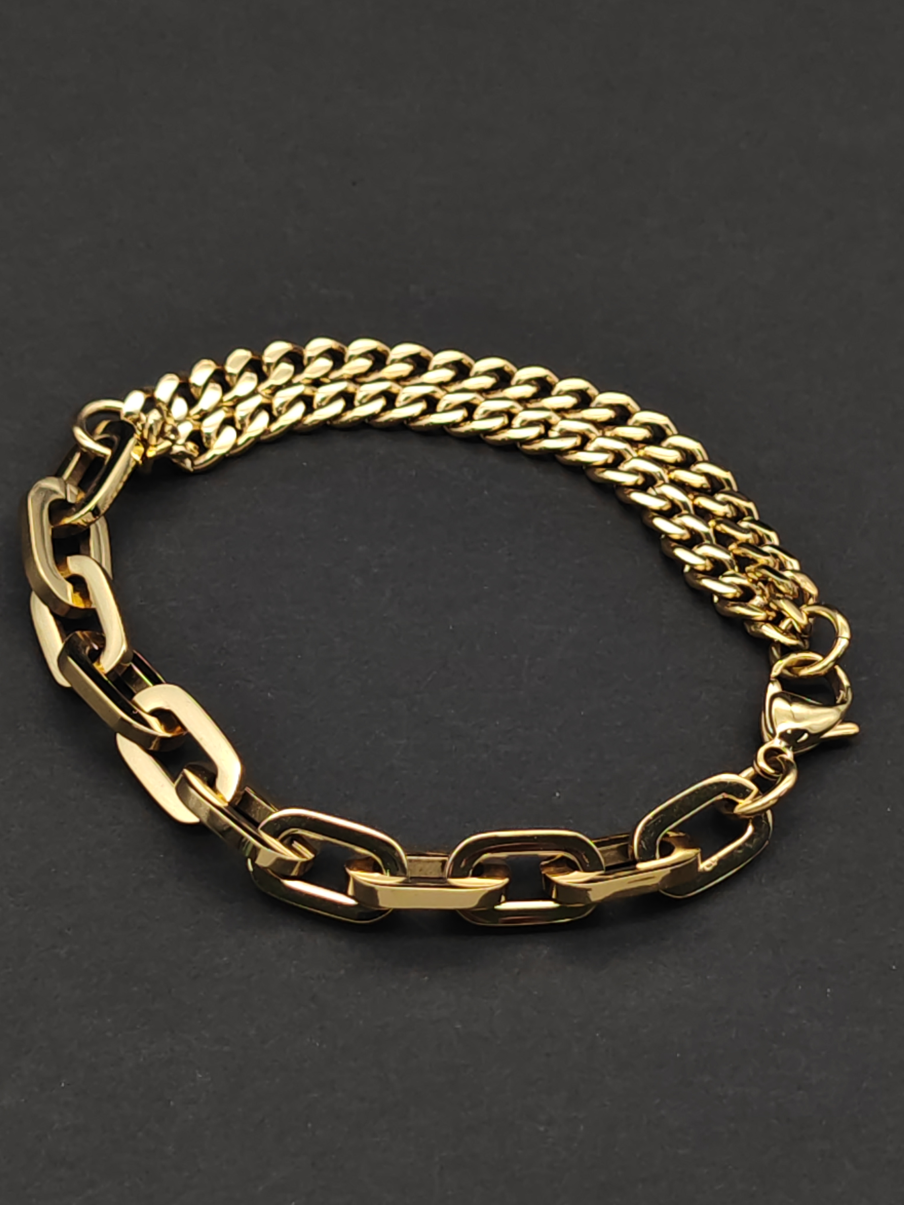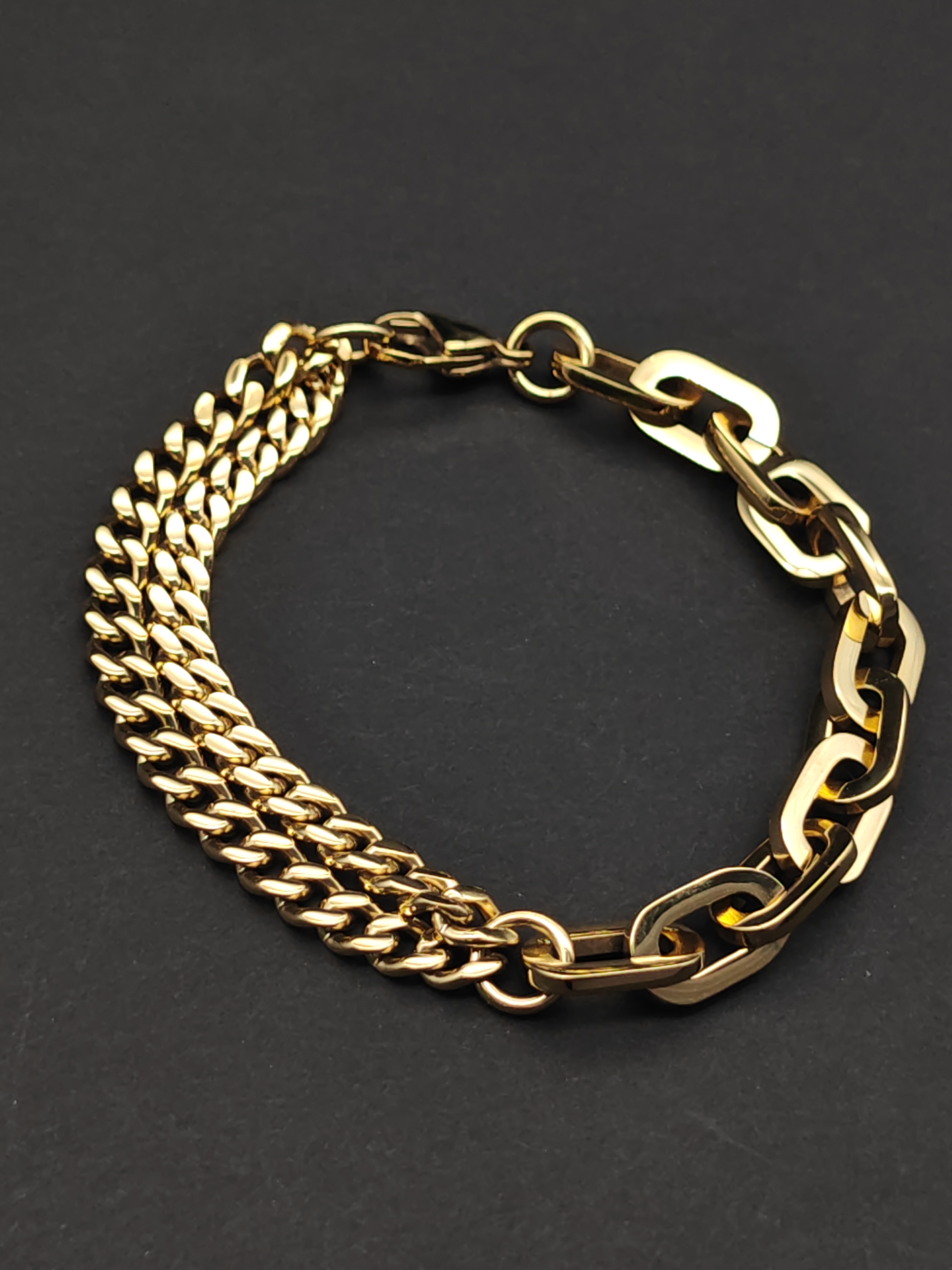 不銹鋼光令淺金色雙拼手鏈(STL-B322)Stainless Steel Gold Plated Multi Chain Bracelet