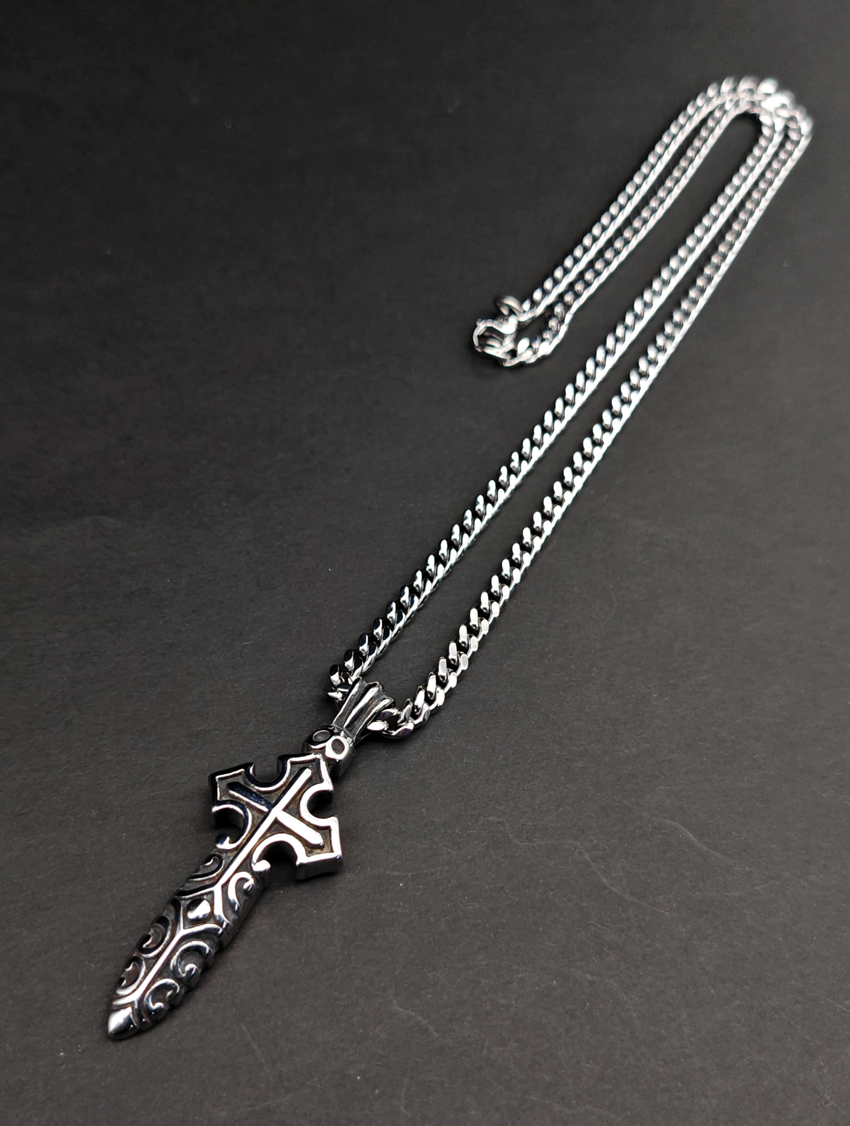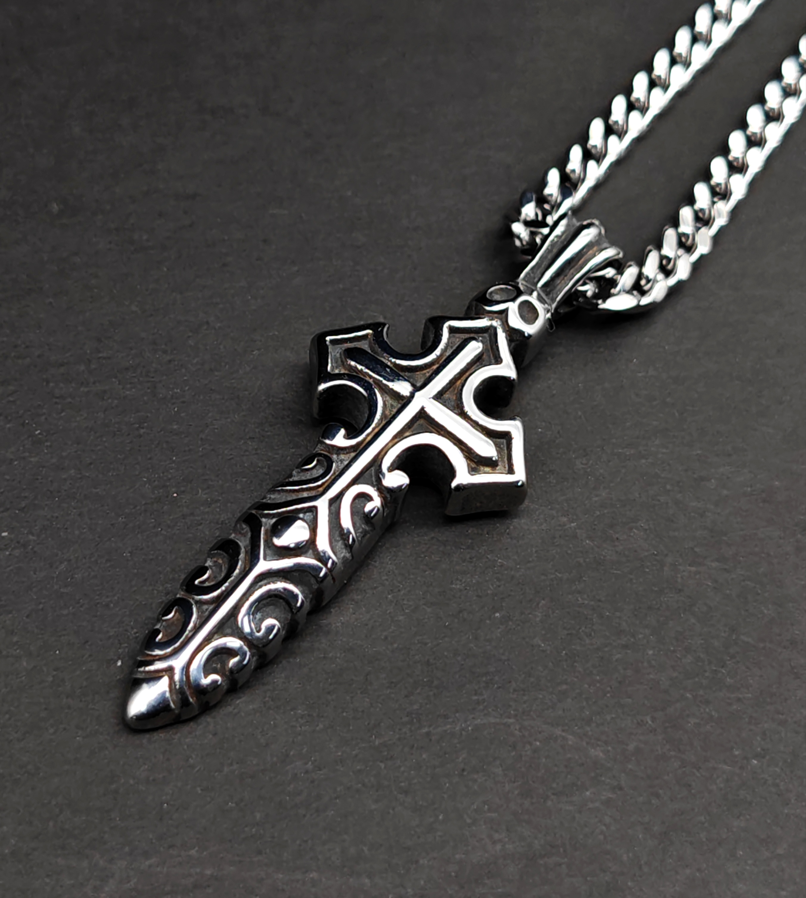 不銹鋼復古黑24mm匕首型十字架吊咀頸鏈