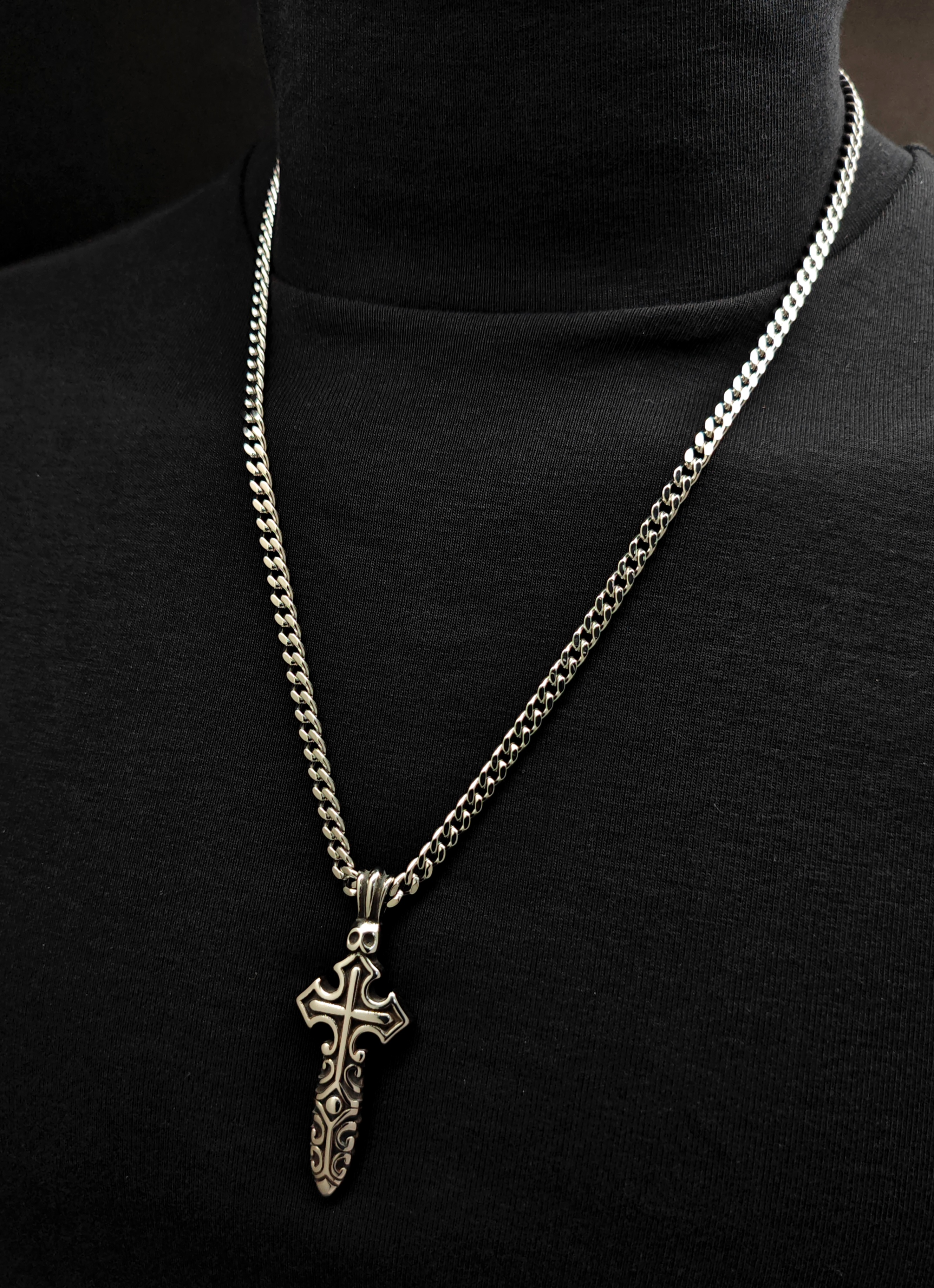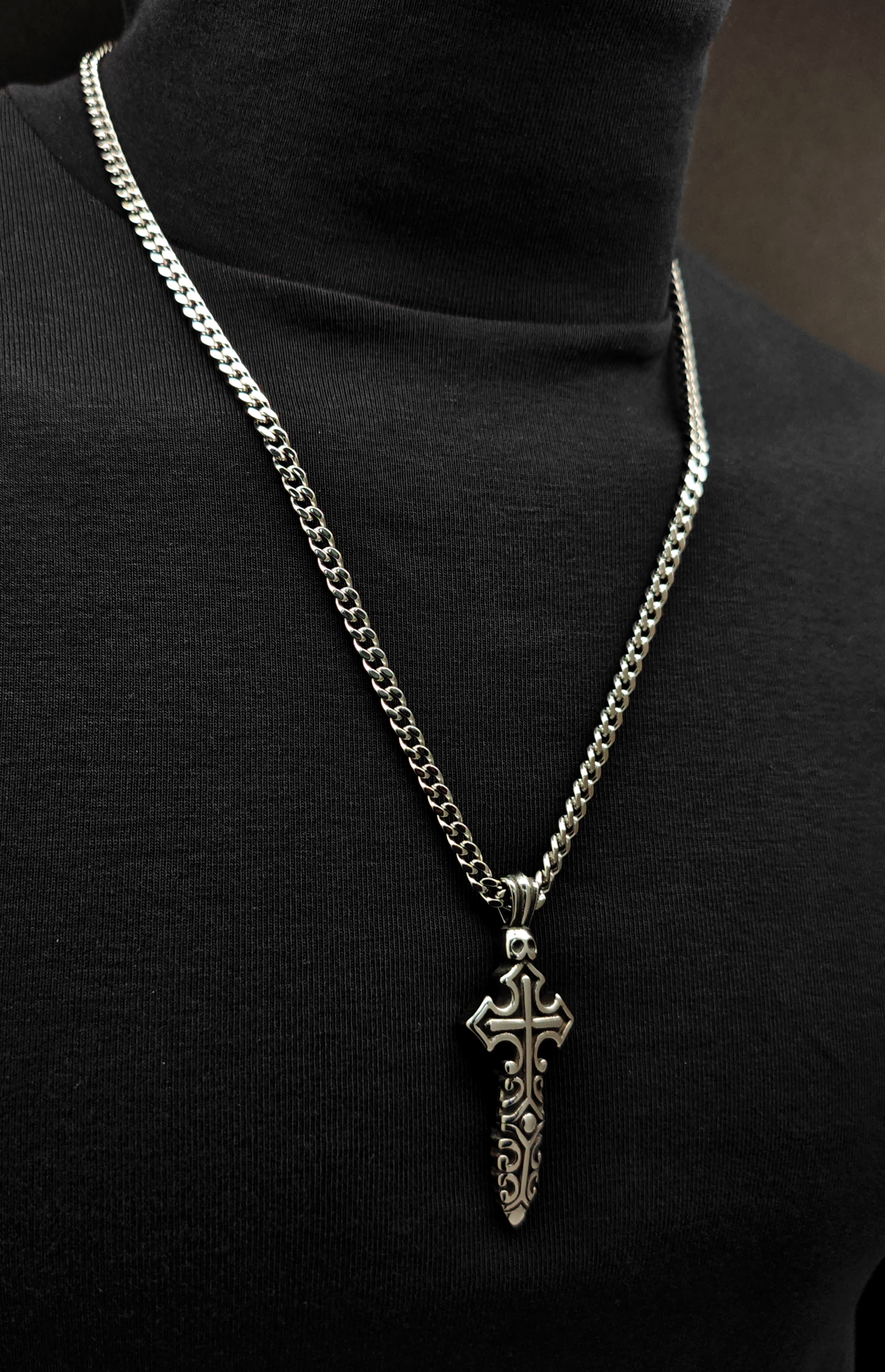Stainless Steel Antique Black Silver 24mm Dragger Cross Necklace