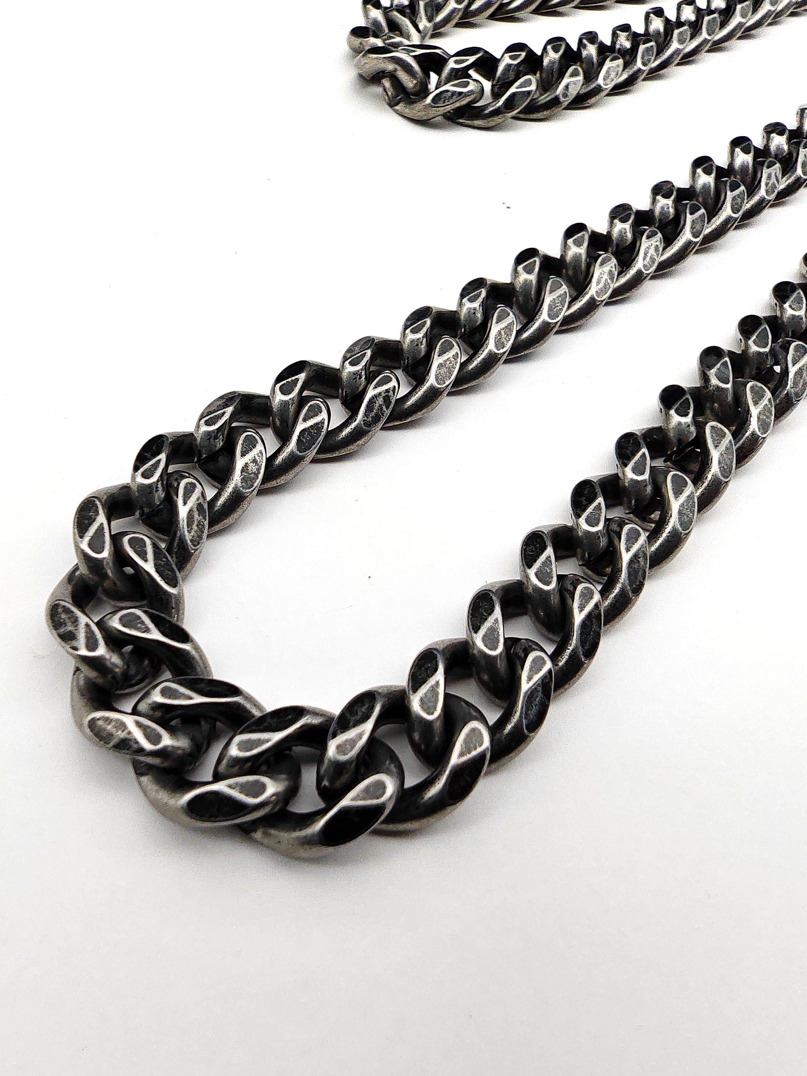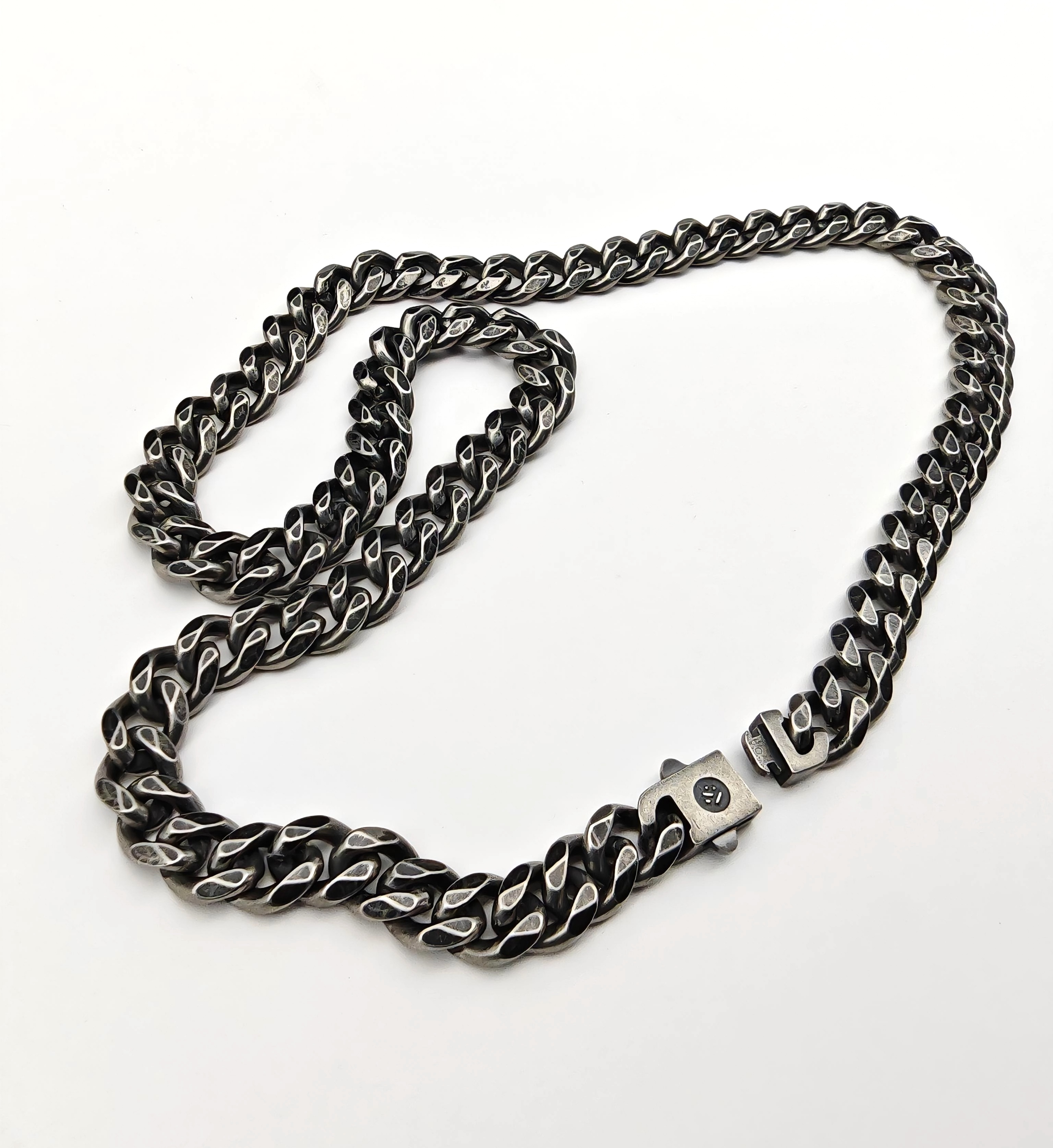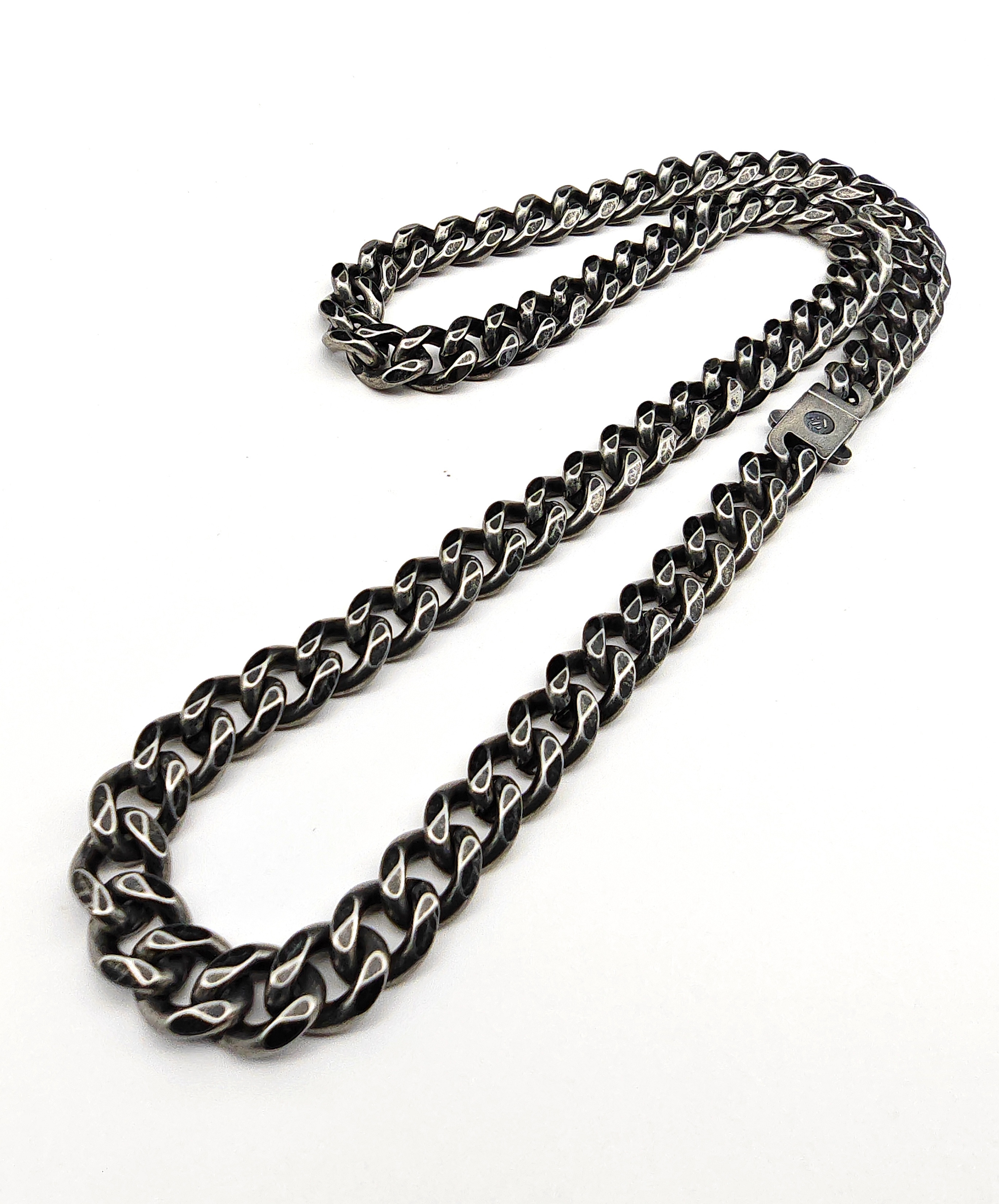 10.5mm復古銀黑古巴鏈頸鏈(N843OXD) Antique Black Silver 10.5mm Cuban Chain Necklace