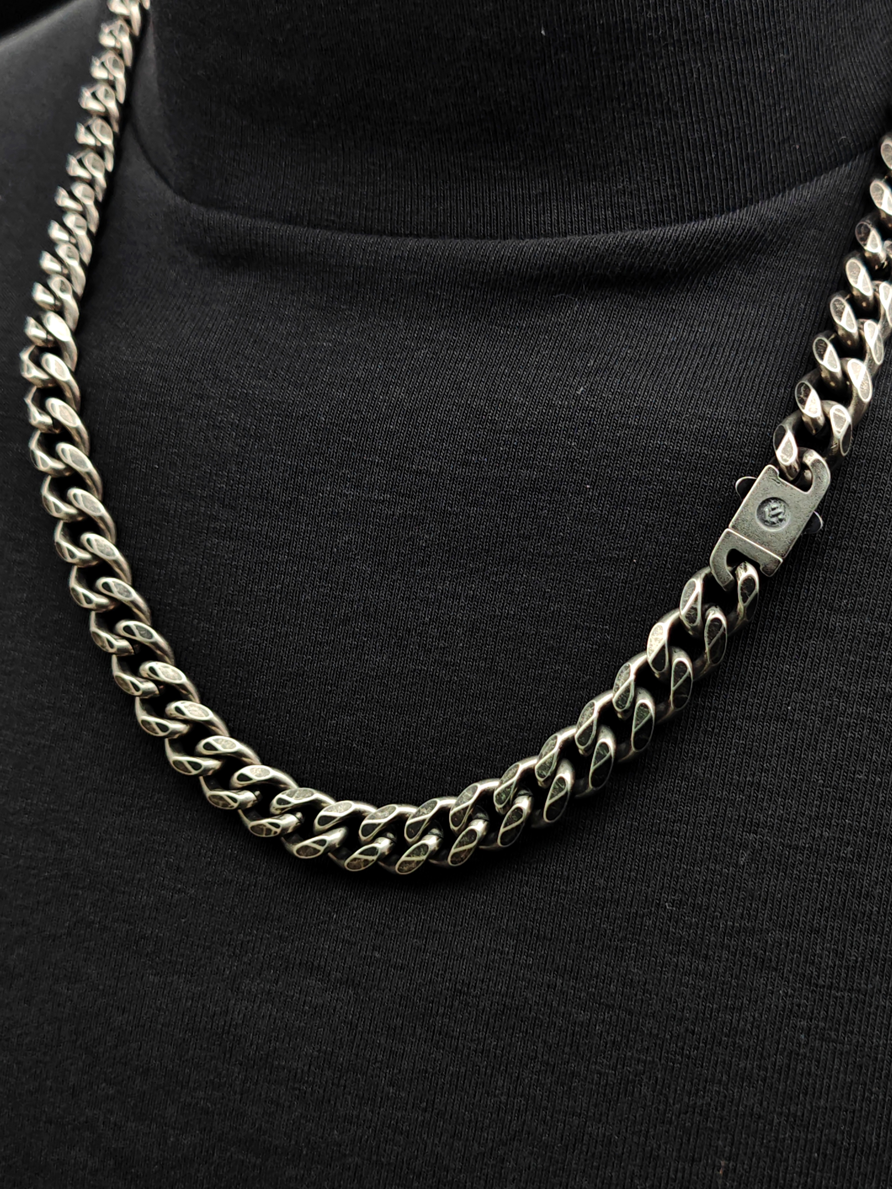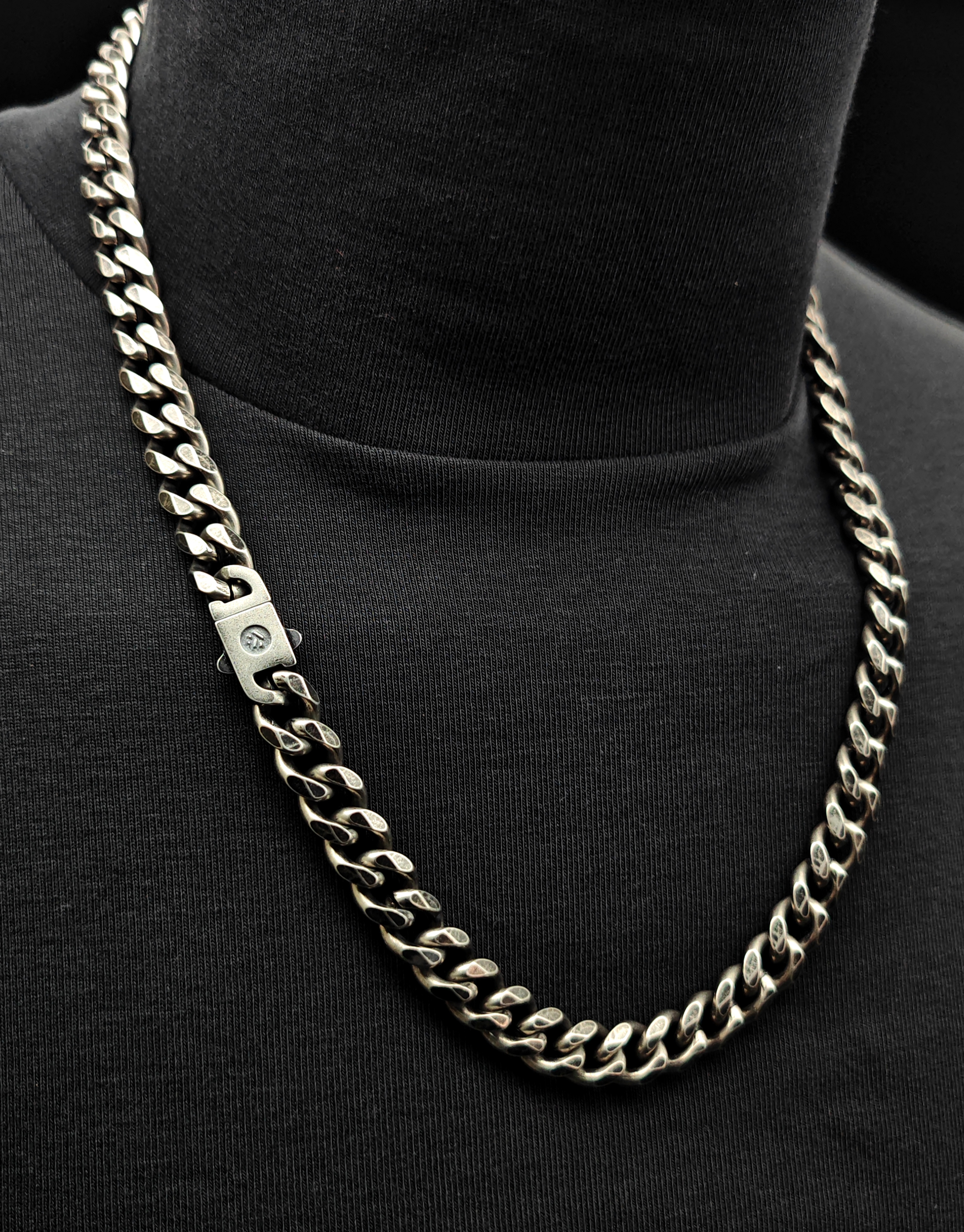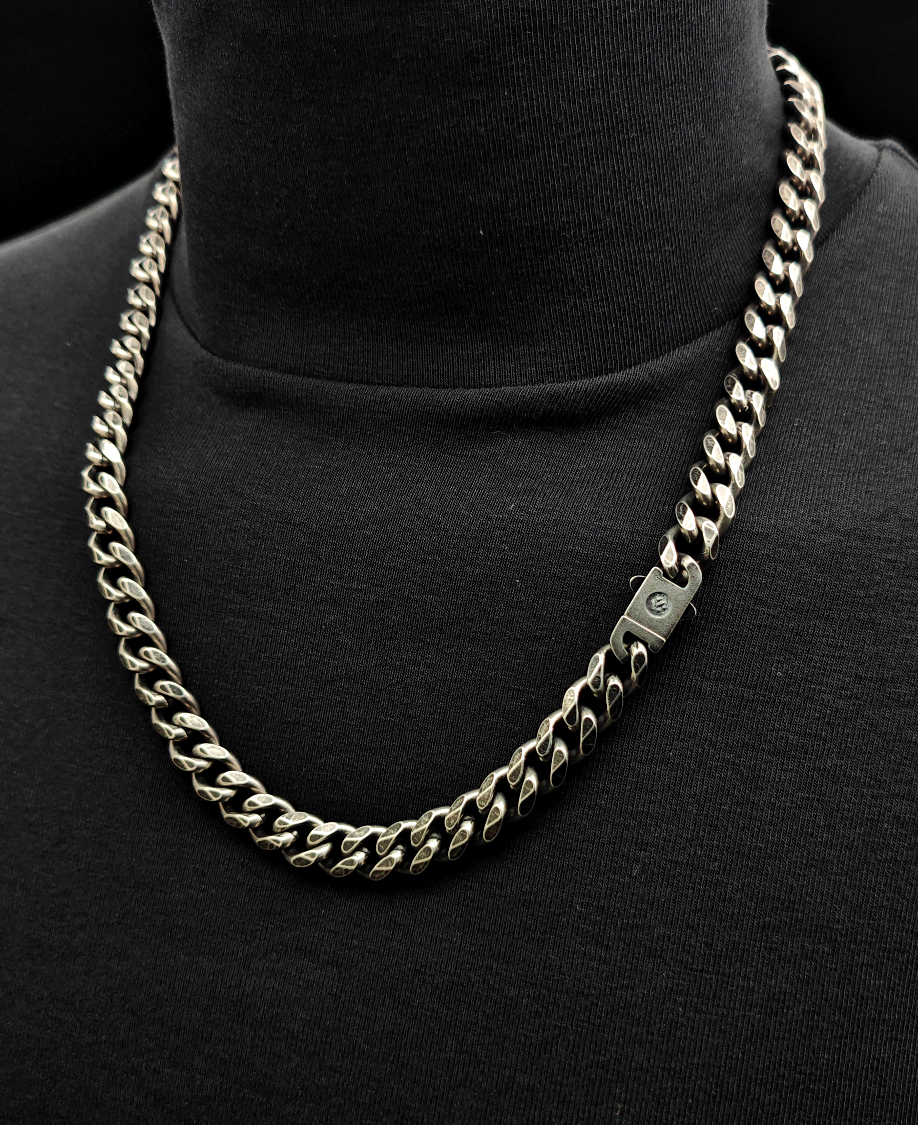 10.5mm復古銀黑古巴鏈頸鏈(N843OXD) Antique Black Silver 10.5mm Cuban Chain Necklace