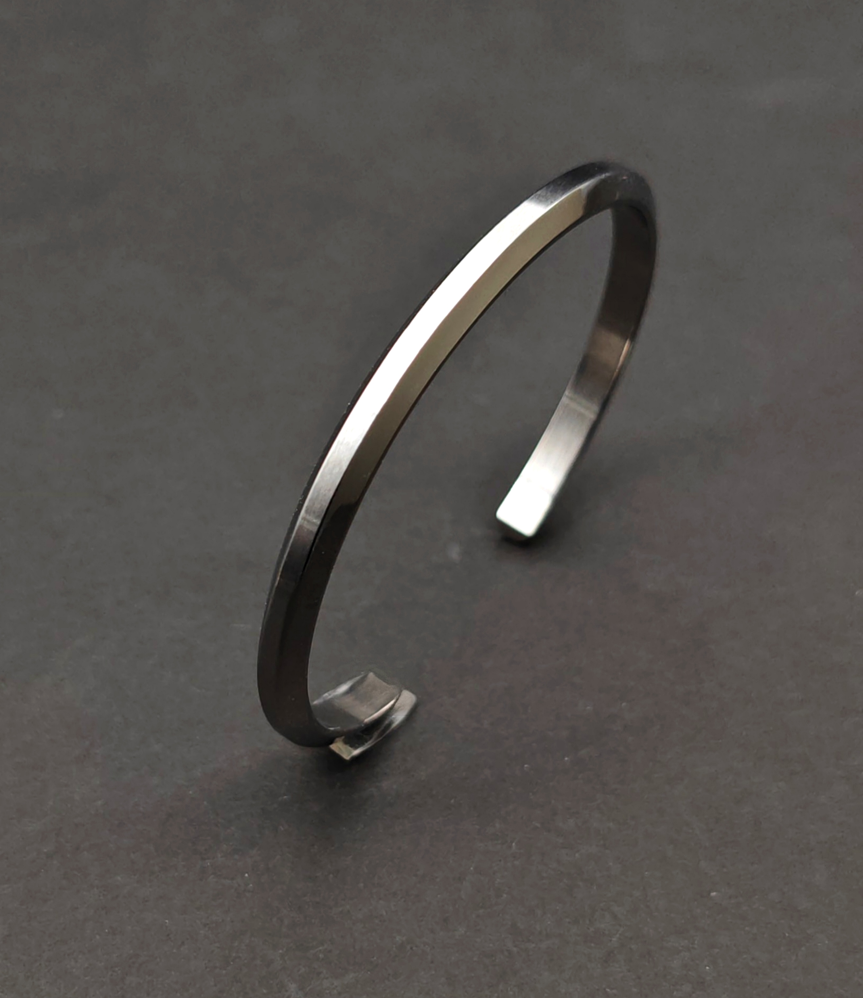 5mm磨砂間光令鋼色切邊開口手鐲(B569S)5mm Two Tone Matt and Polish Edges Cut Cuff Bangle