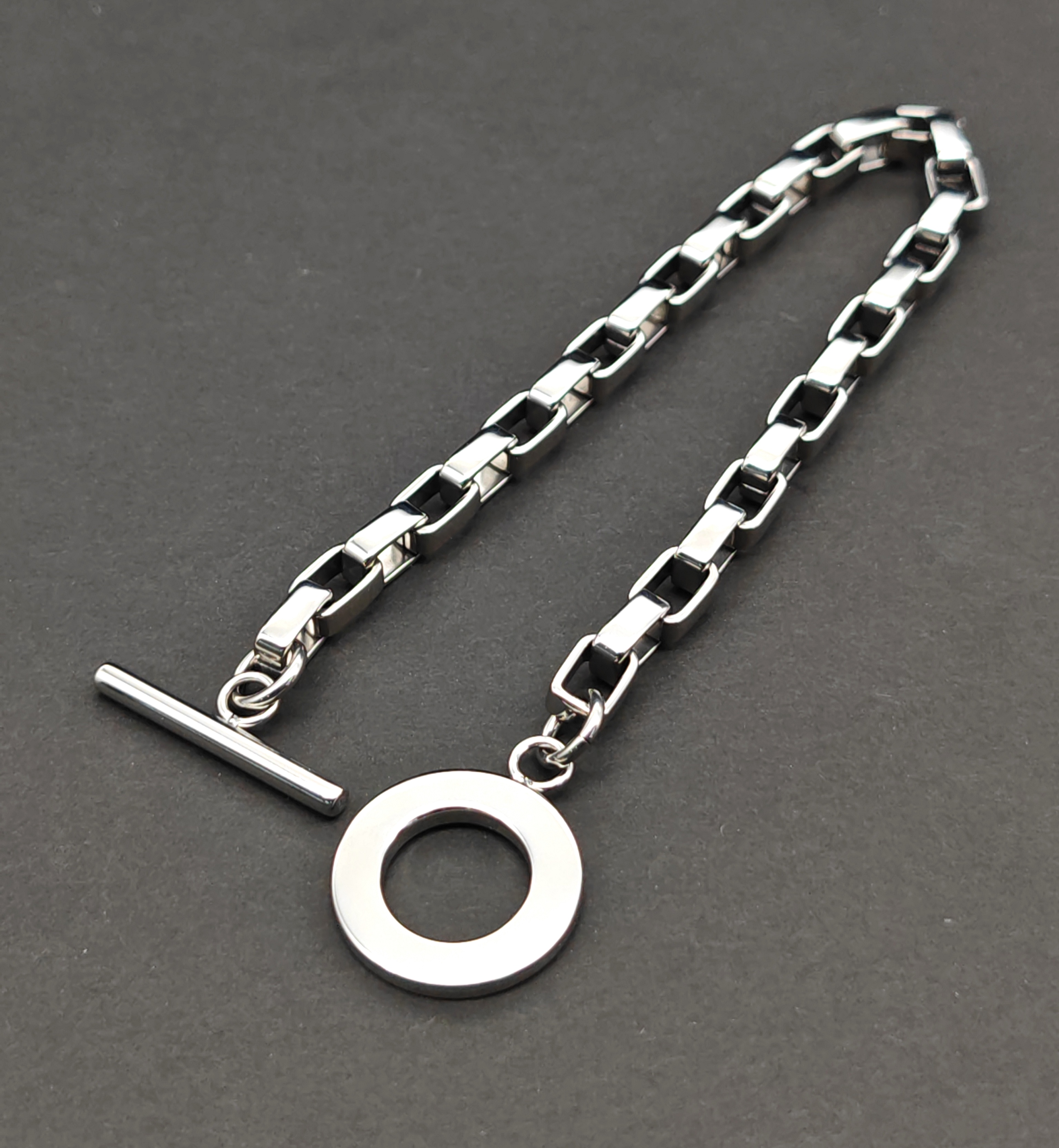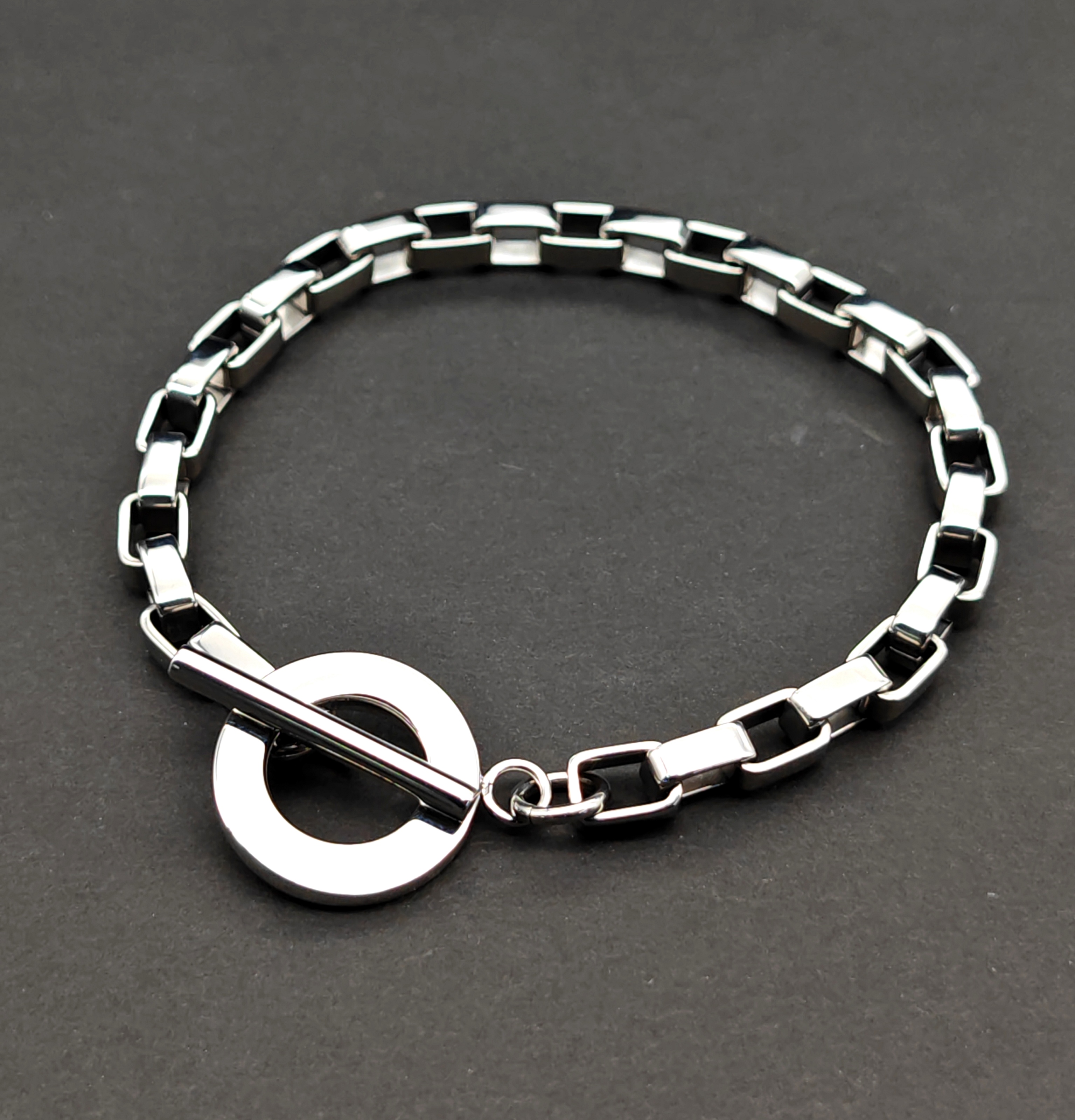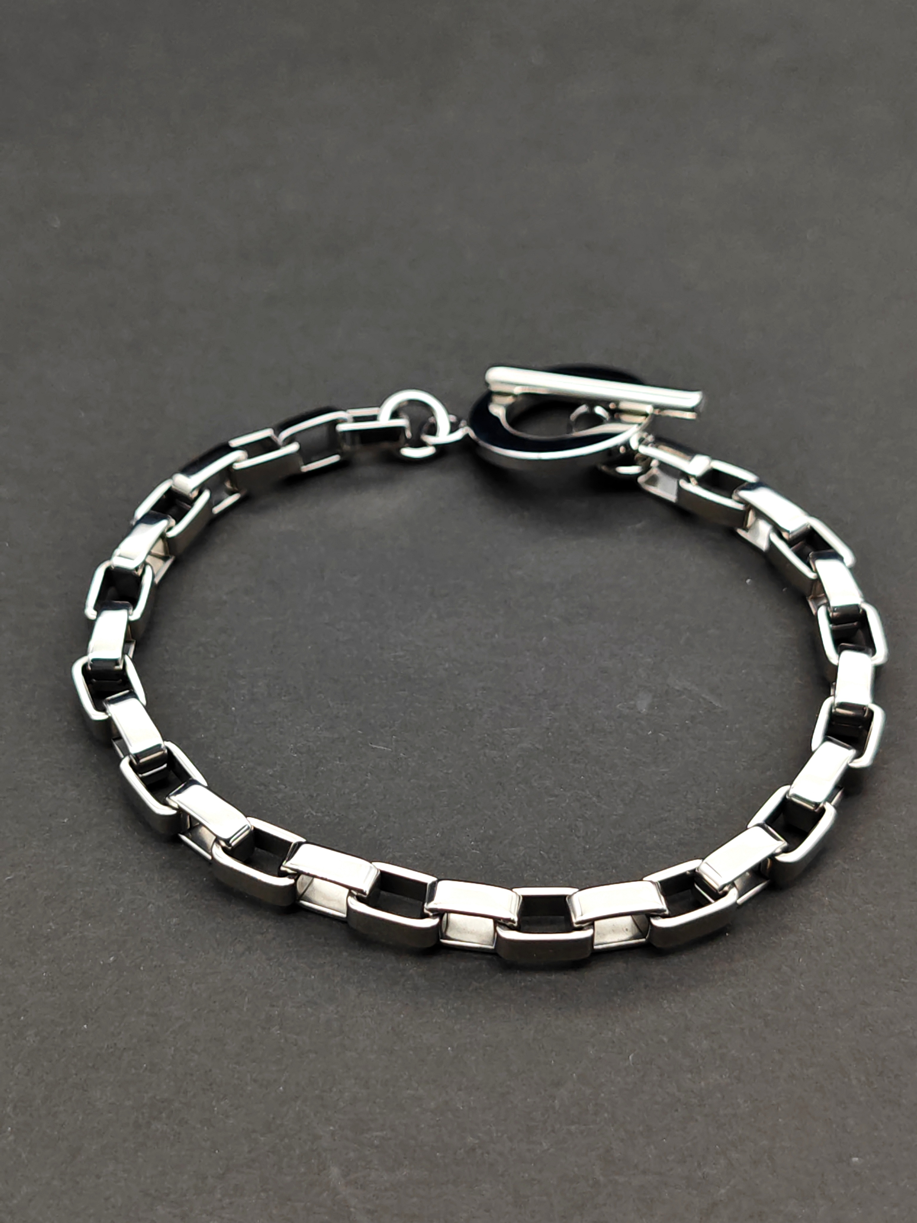 6mm光令鋼色長方盒型鏈手鏈(B855S)Steel Polish 6mm Long Box Chain Bracelet