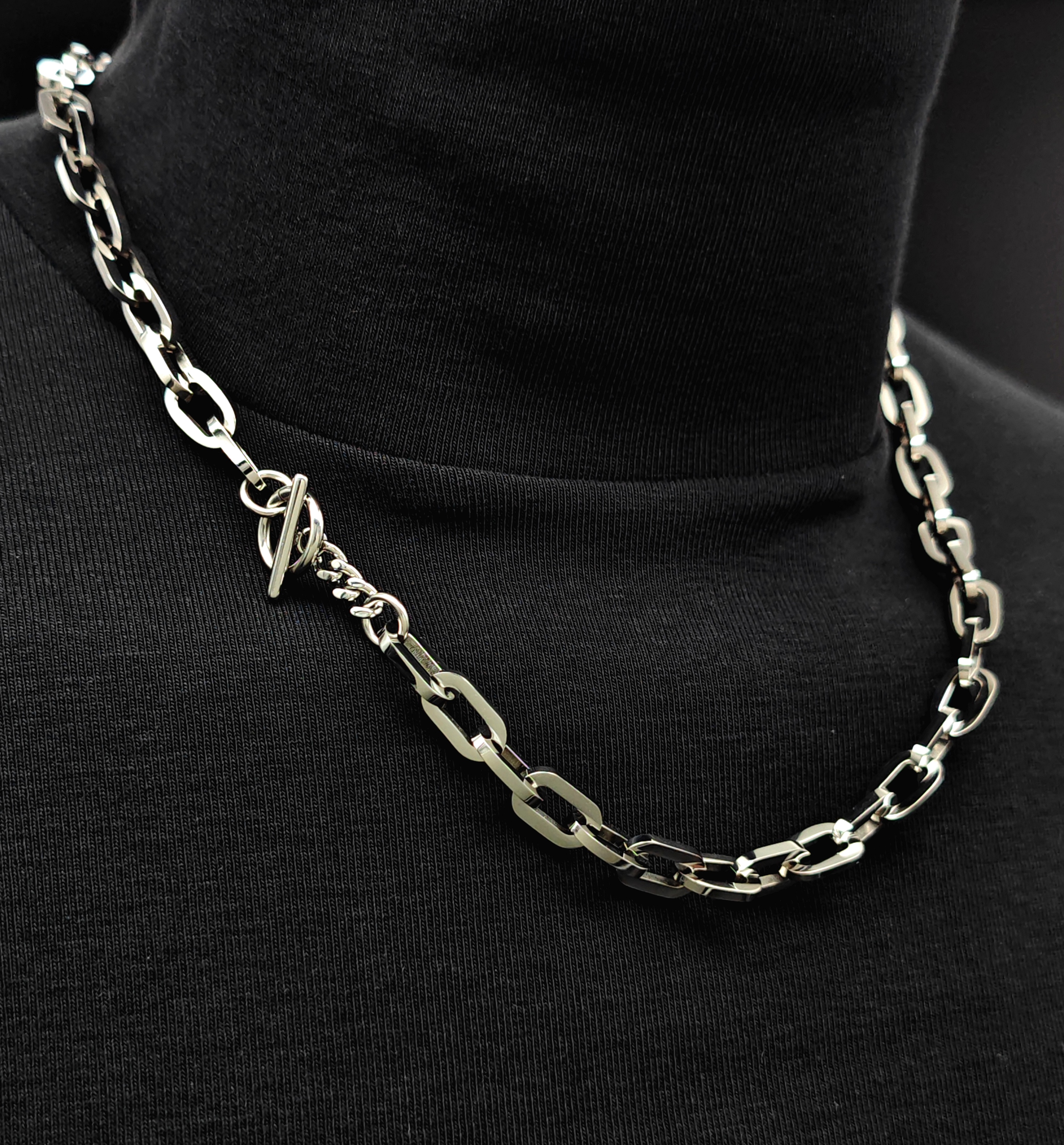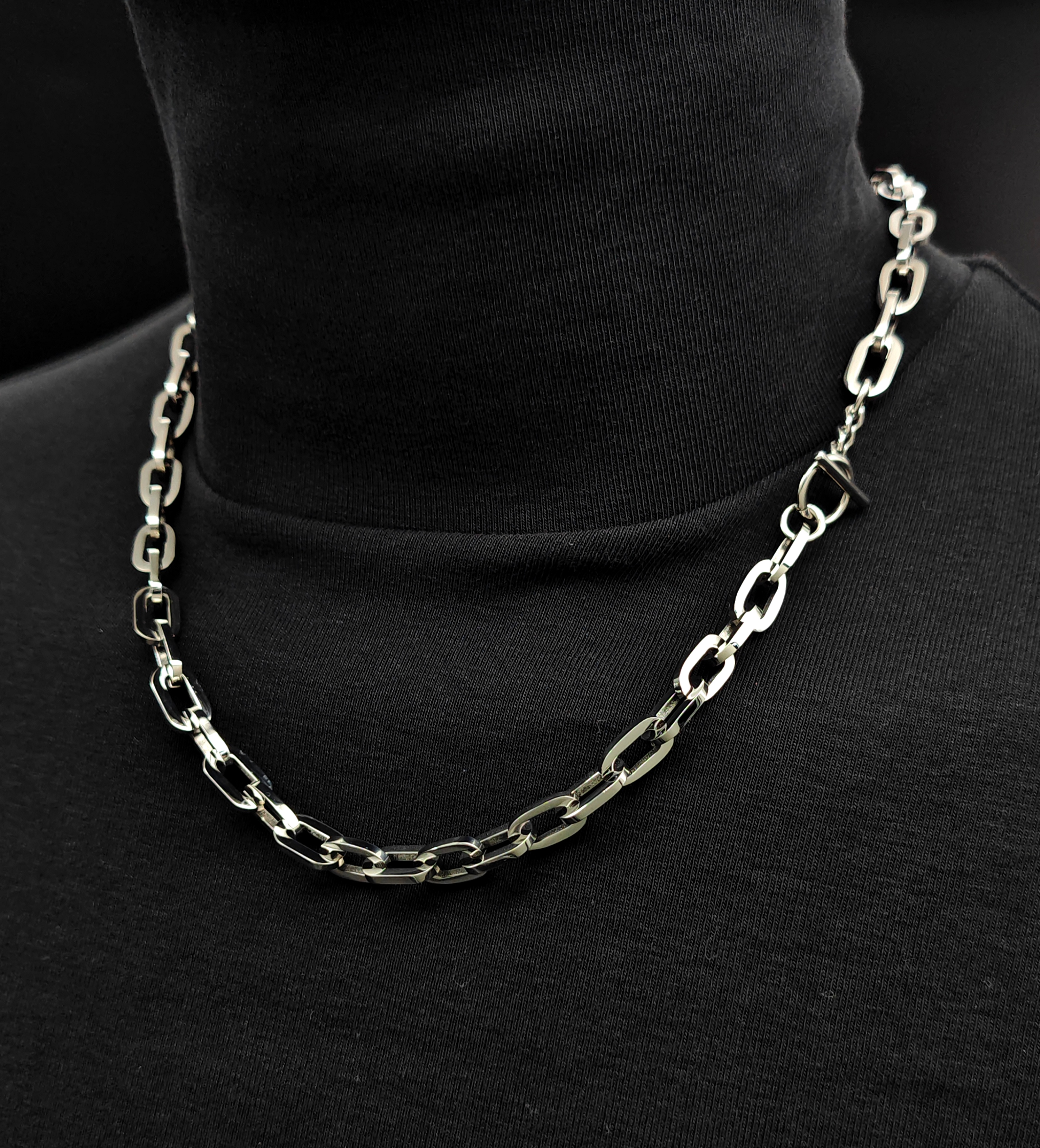 STL-N629 不銹鋼8mm光令扁身橢圓圈鏈頸鏈 Stainless Steel 8mm Polish Oval Link Necklace 顏色Color:光令鋼色 / Polish Steel 尺碼Size: 長H 14mm x 闊W 8mm x 厚T 1.8mm 重量 Weight : 41.0gram 全長 Length : 40.5cm 45cm / 50cm /55cm 配T型棍圈扣 toggle lock