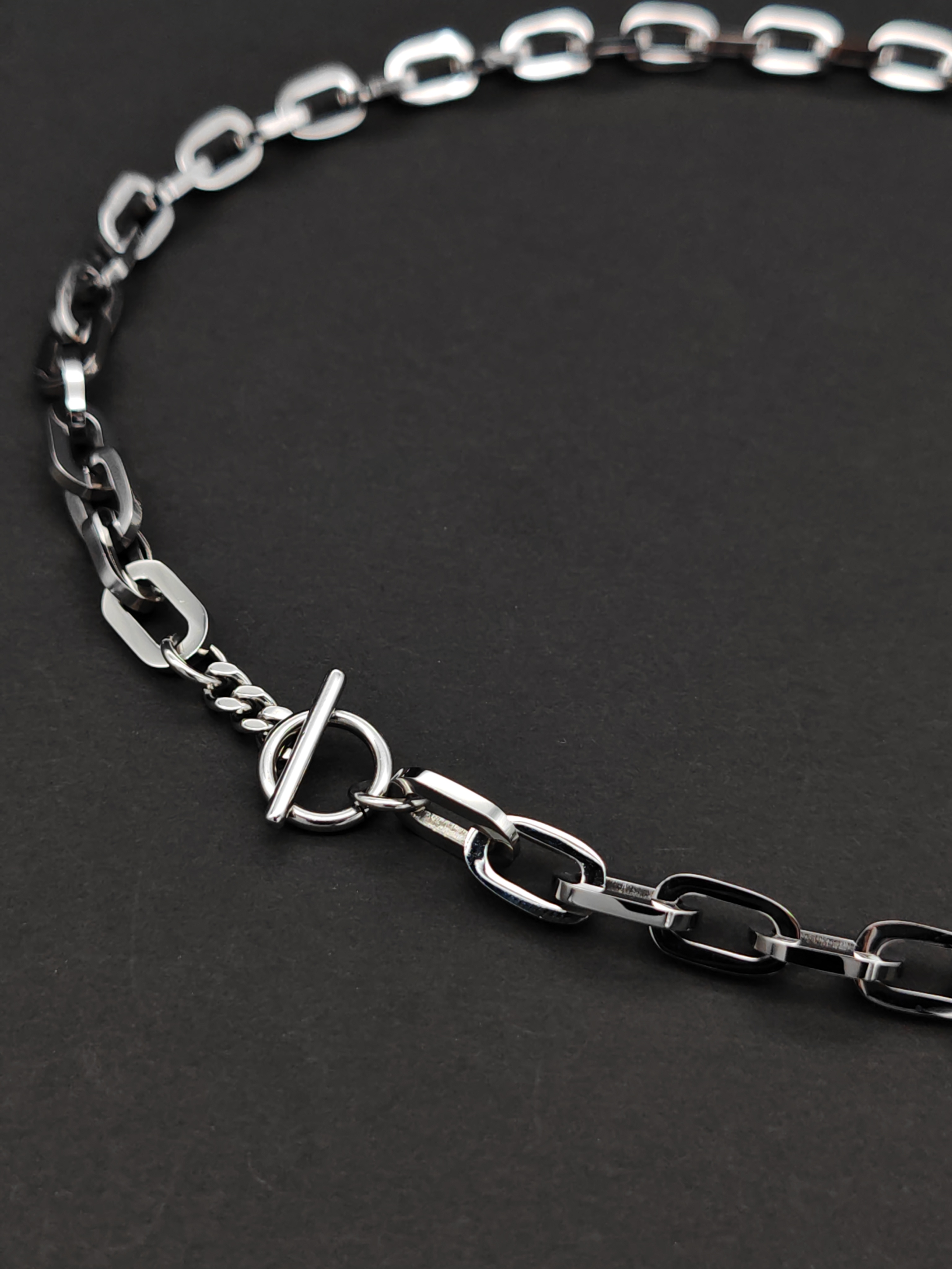 8mm光令鋼色扁橢圓形圈鏈頸鏈(STL-N629) 8mm Polish Steel Oval Link Necklace