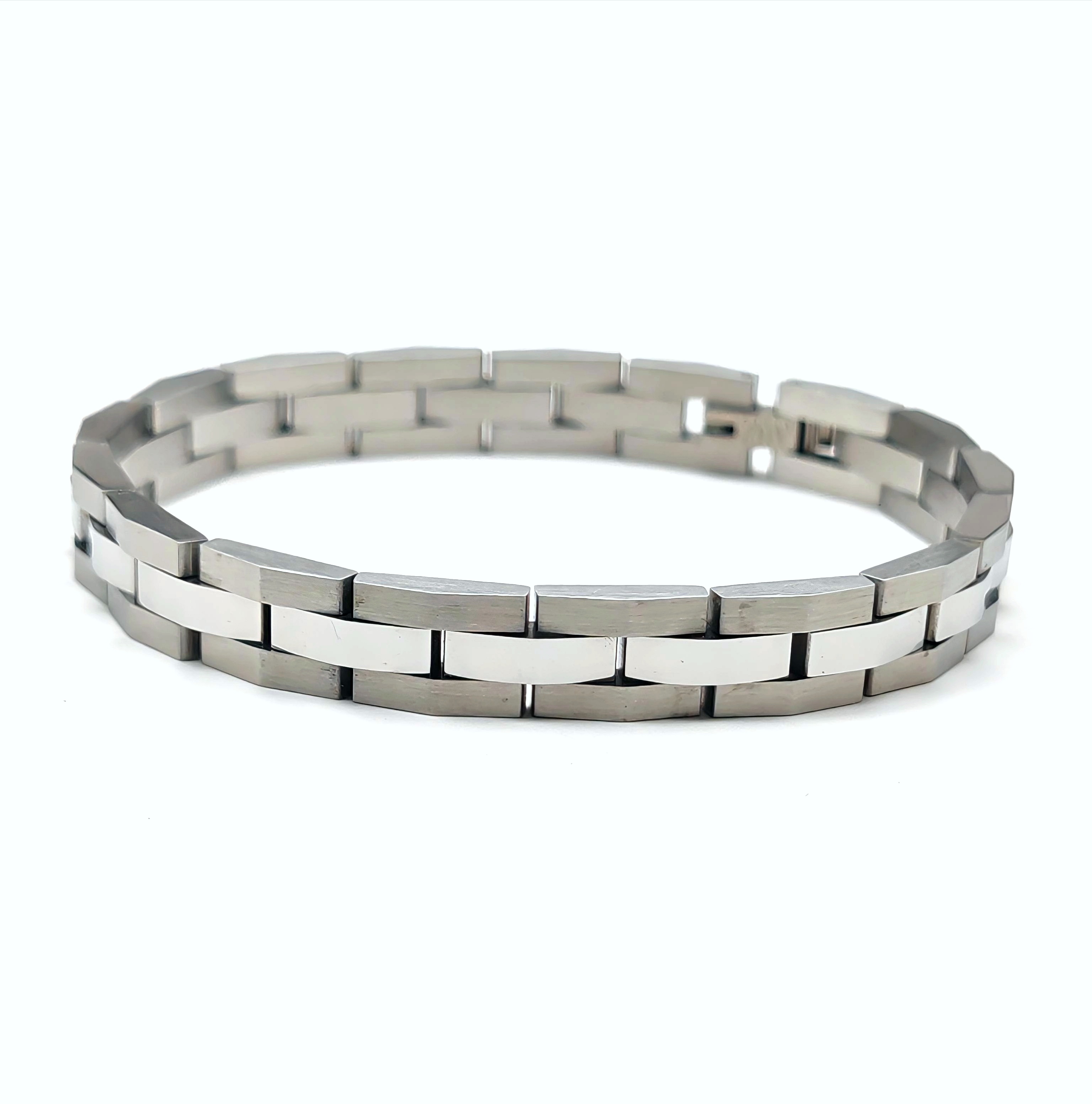 STL-B596 不銹鋼8mm磨砂間光令鋼色實芯斜邊型手鏈 Stainless Steel 8mm Two Tone Satin & Polish Pyramid Link Bracelet 顏色Color:磨砂間光令鋼色 / Two Tone Satin & Polish Steel 尺碼Size: 闊W 8mm/ 厚Thickness 4mm 長度Length :19cm / 20.5cm / 21.5cm配珠寶制扣 buckle lock 重量Weight: 30gram