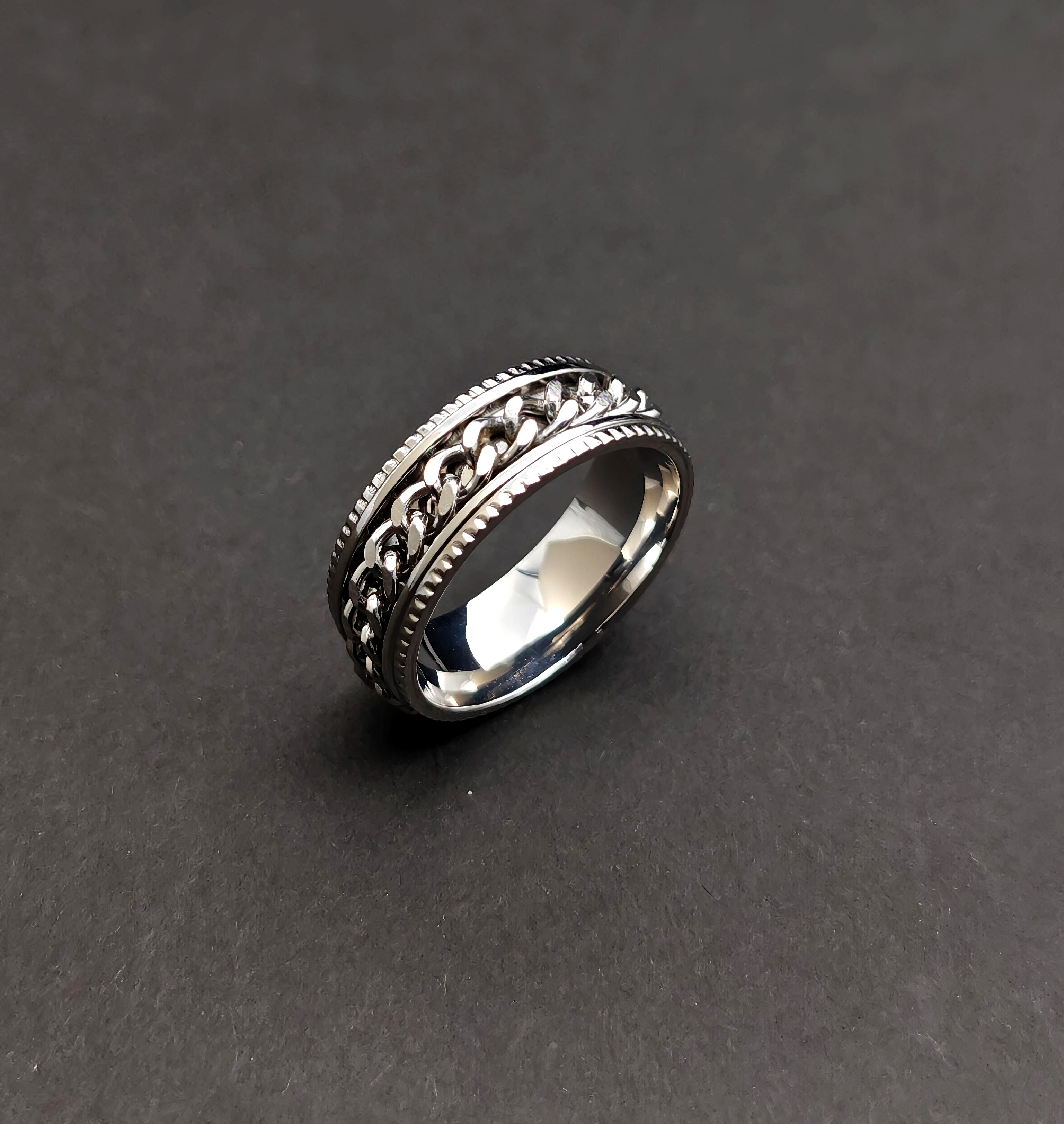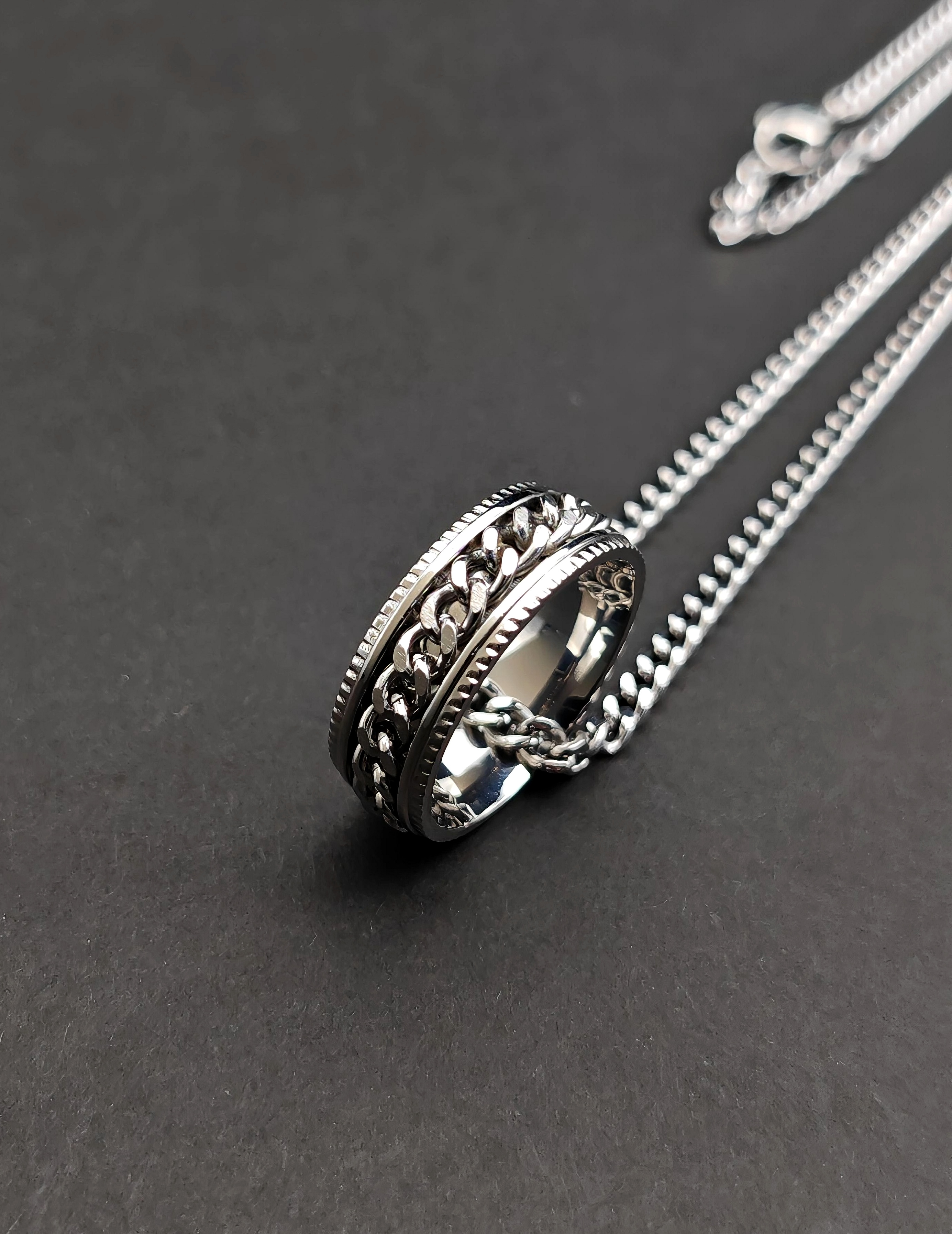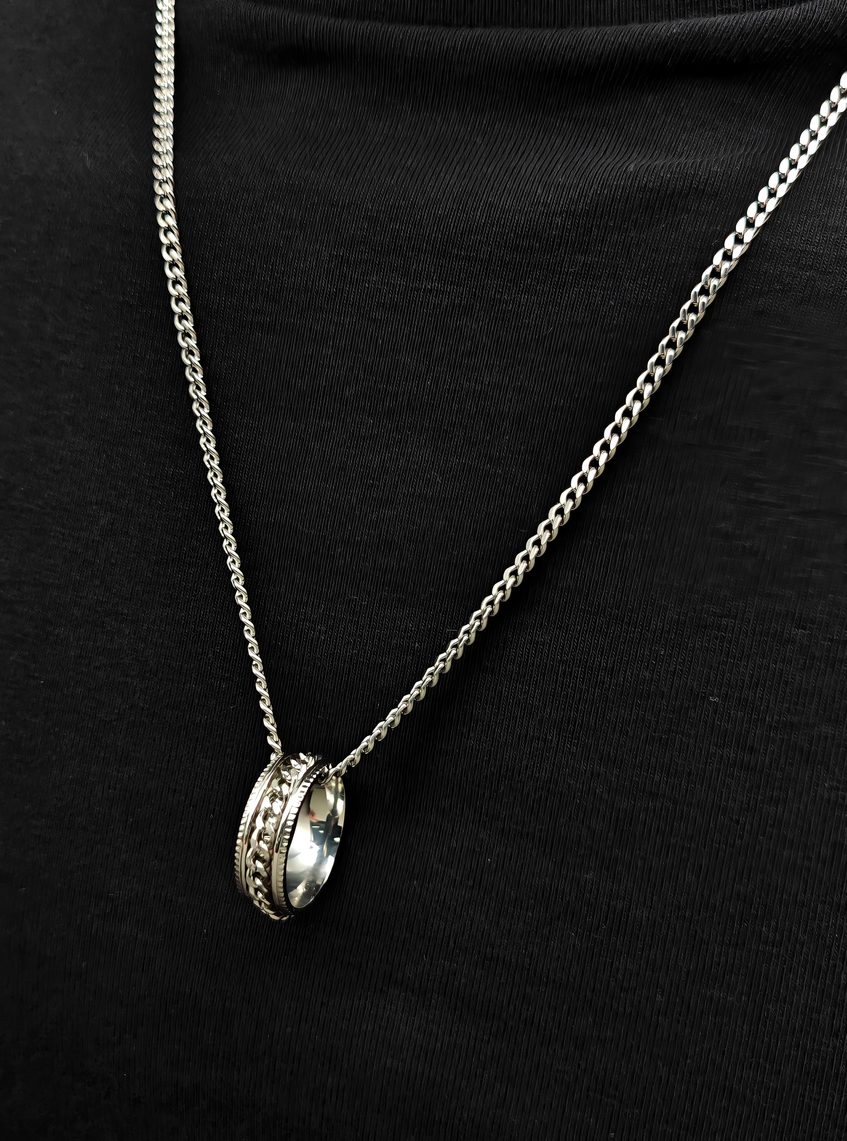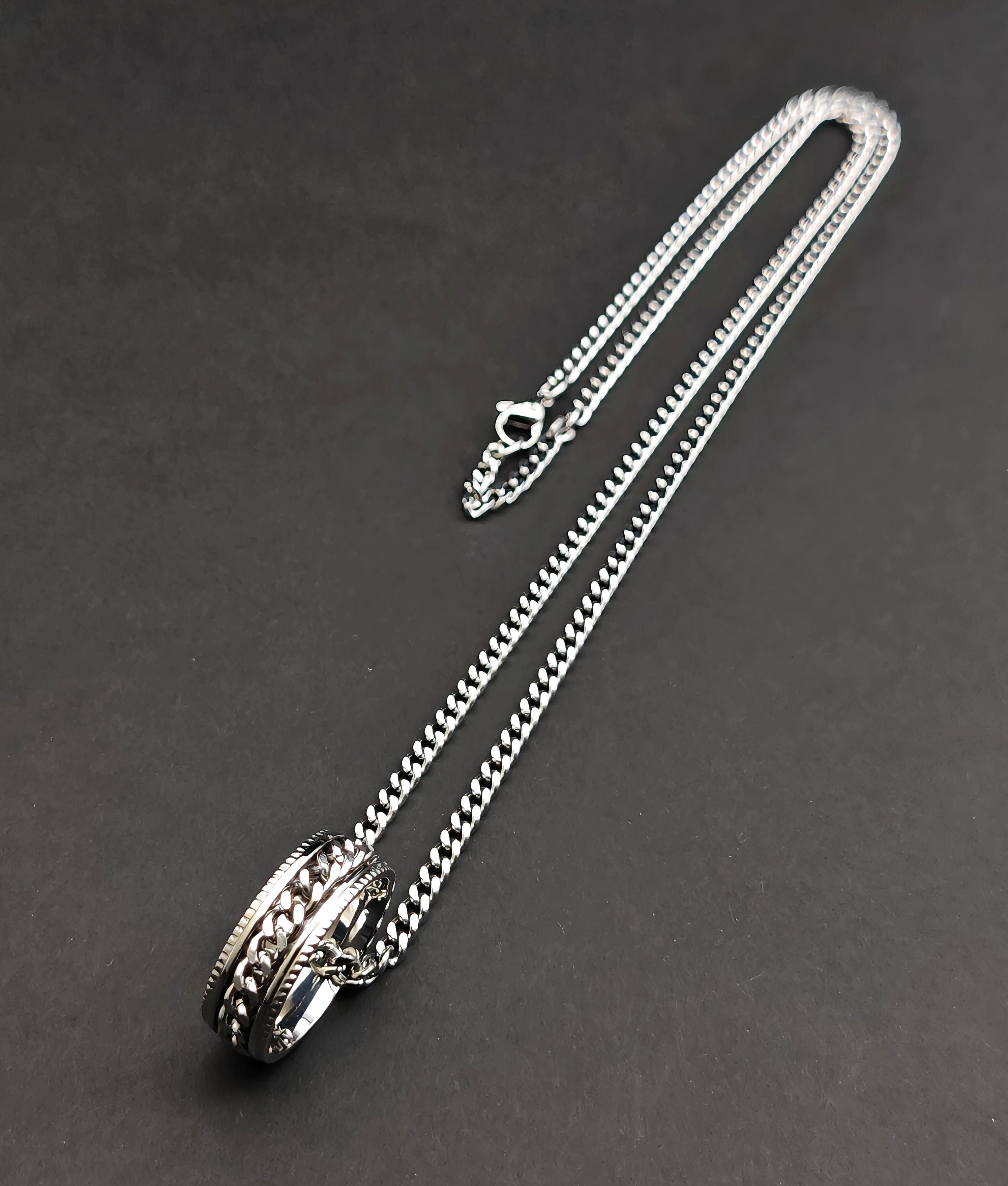 8mm鋼色鑲旋轉古巴鏈介指頸鏈(N849S) Stainless Steel 8mm Spinning Cuban Chain Ring Necklace