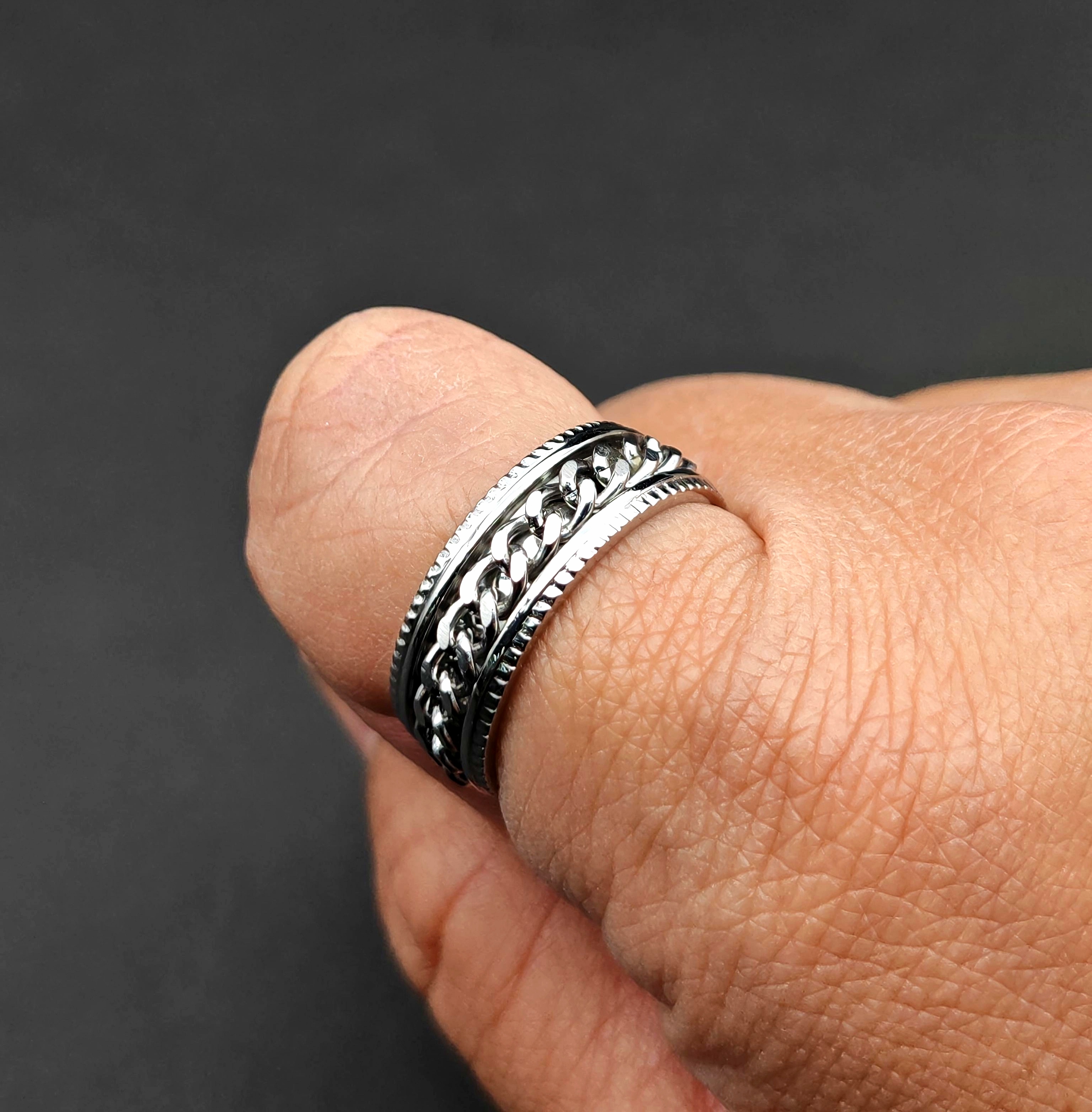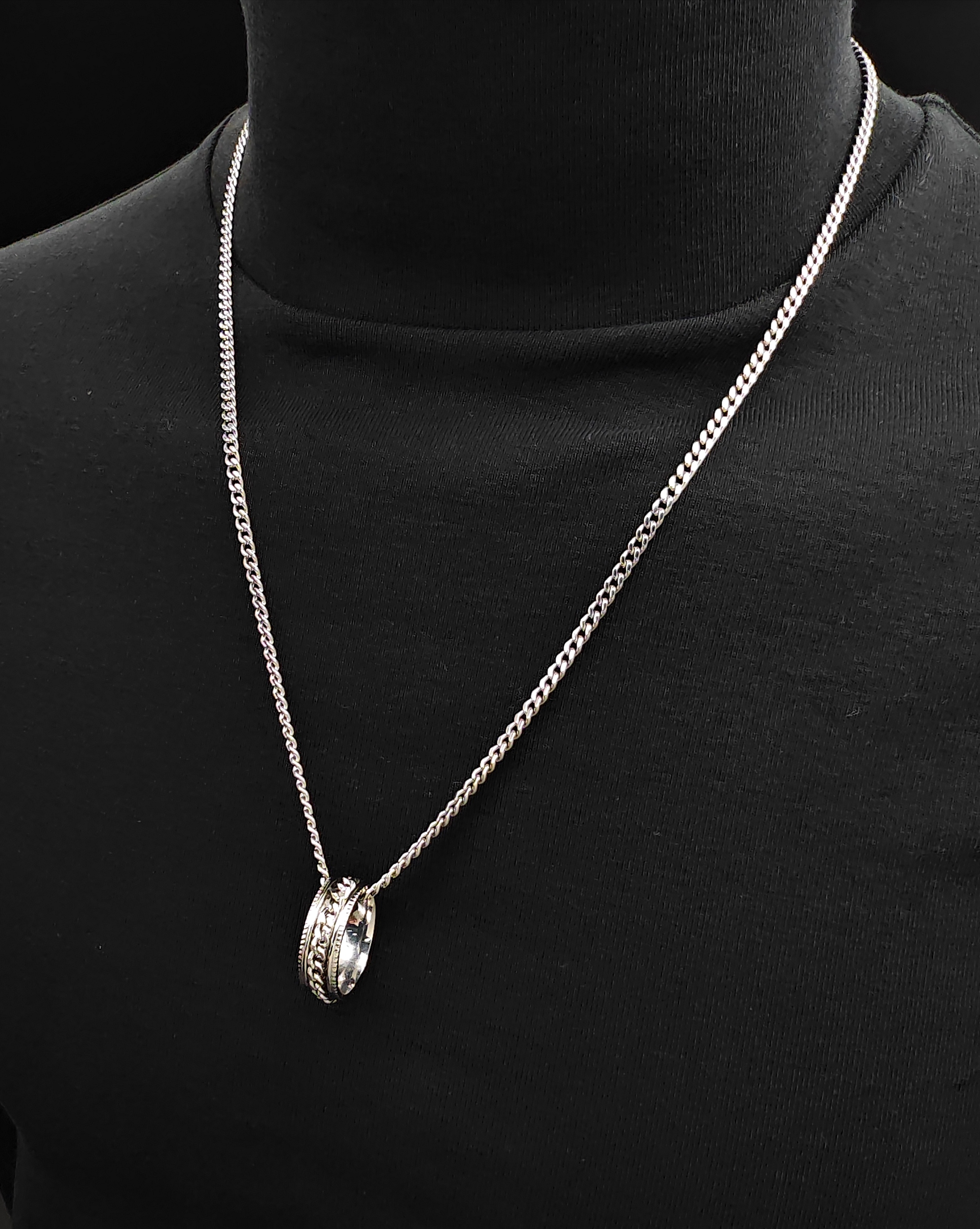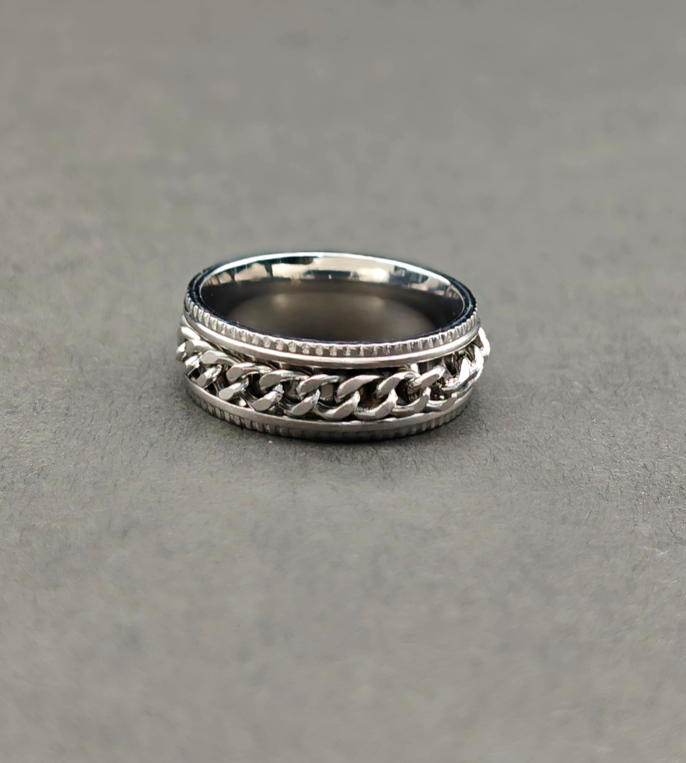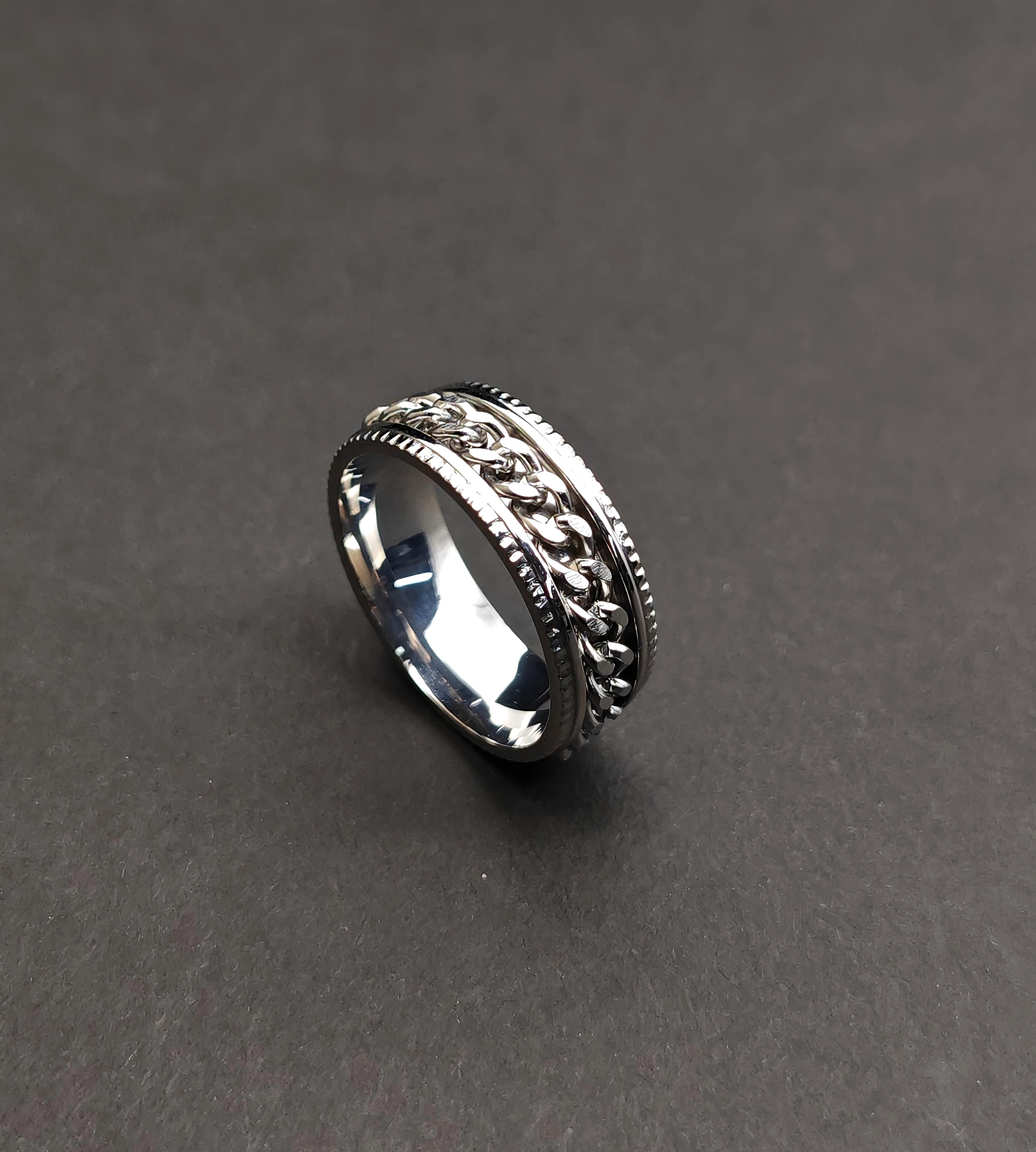 8mm鋼色鑲旋轉古巴鏈介指頸鏈(N849S) Stainless Steel 8mm Spinning Cuban Chain Ring Necklace