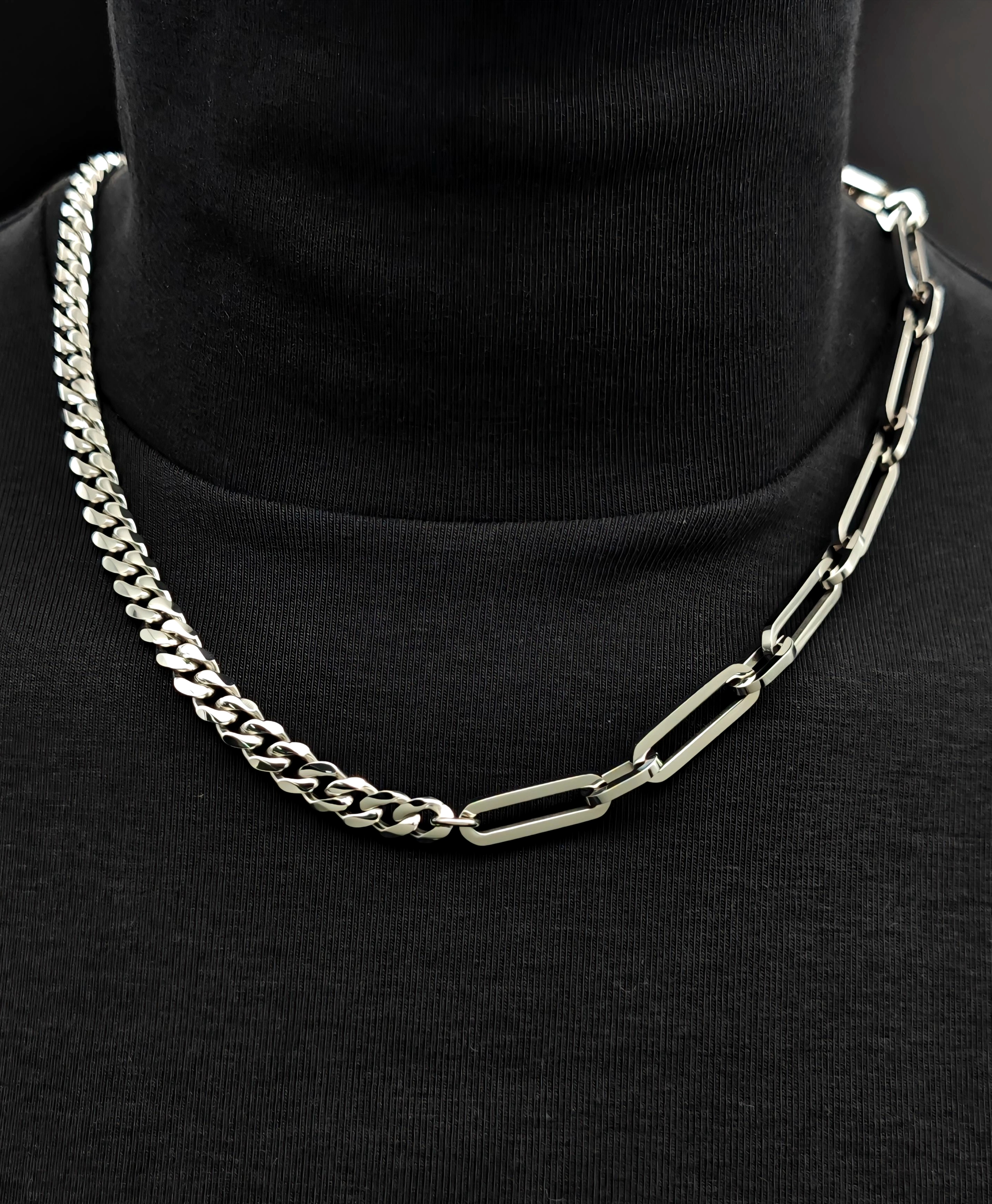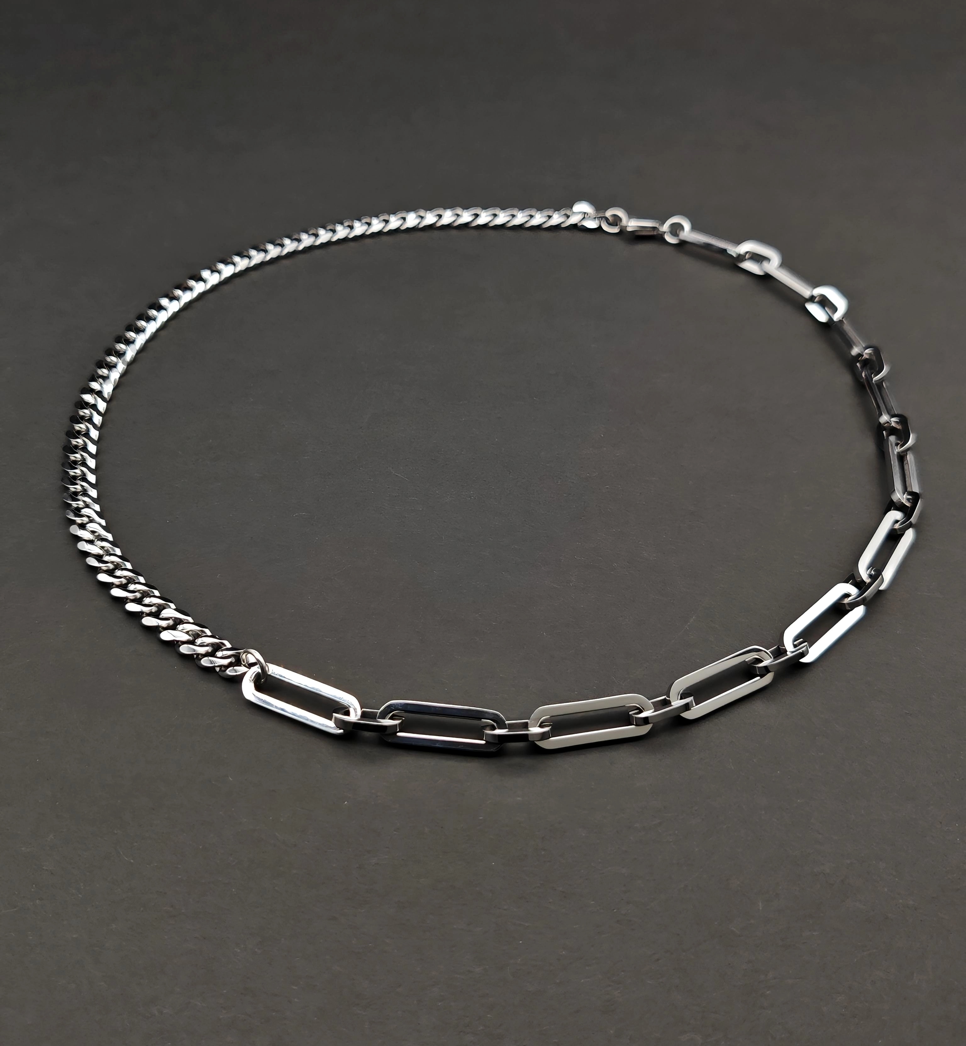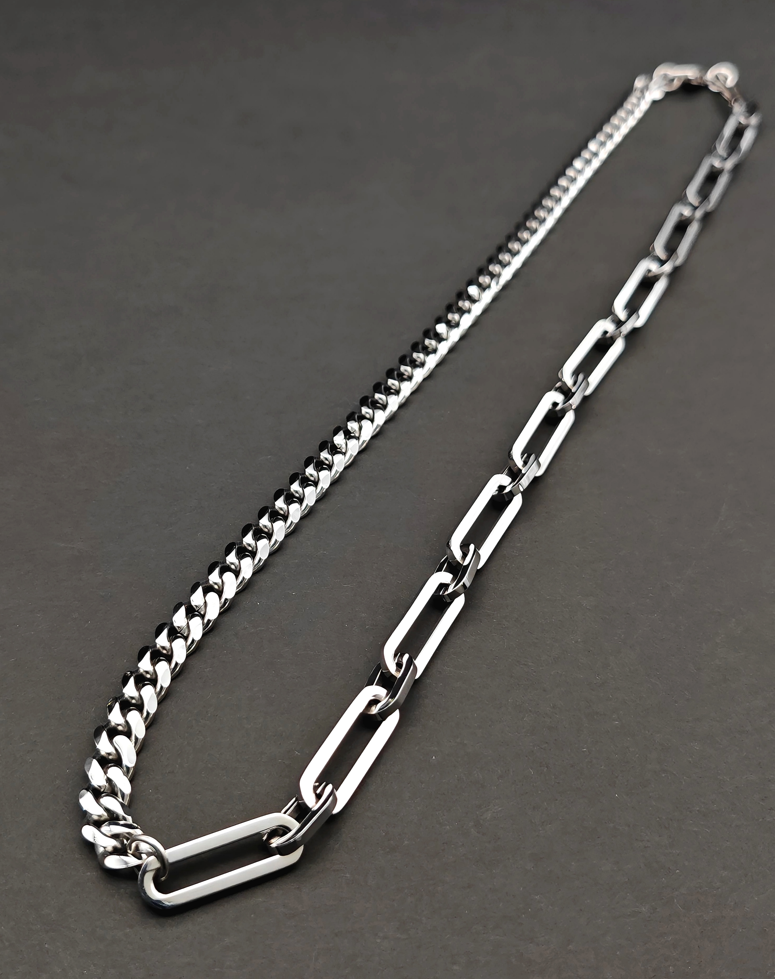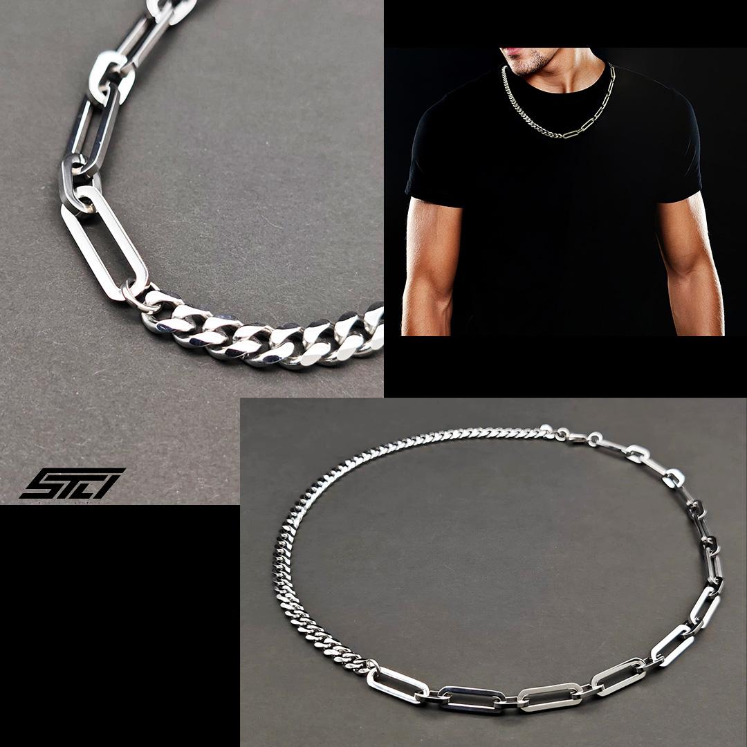 8mm鋼色長橢圓古巴鏈混合頸鏈(STL-N522)8mm Mixed Cuban & Oval Chain Necklace