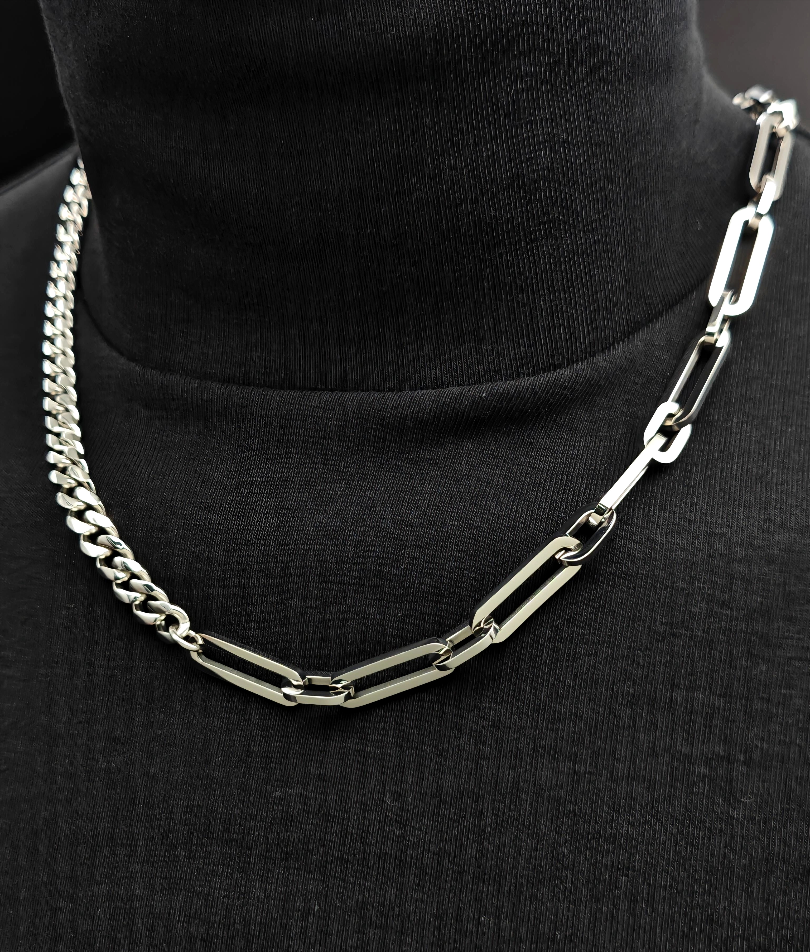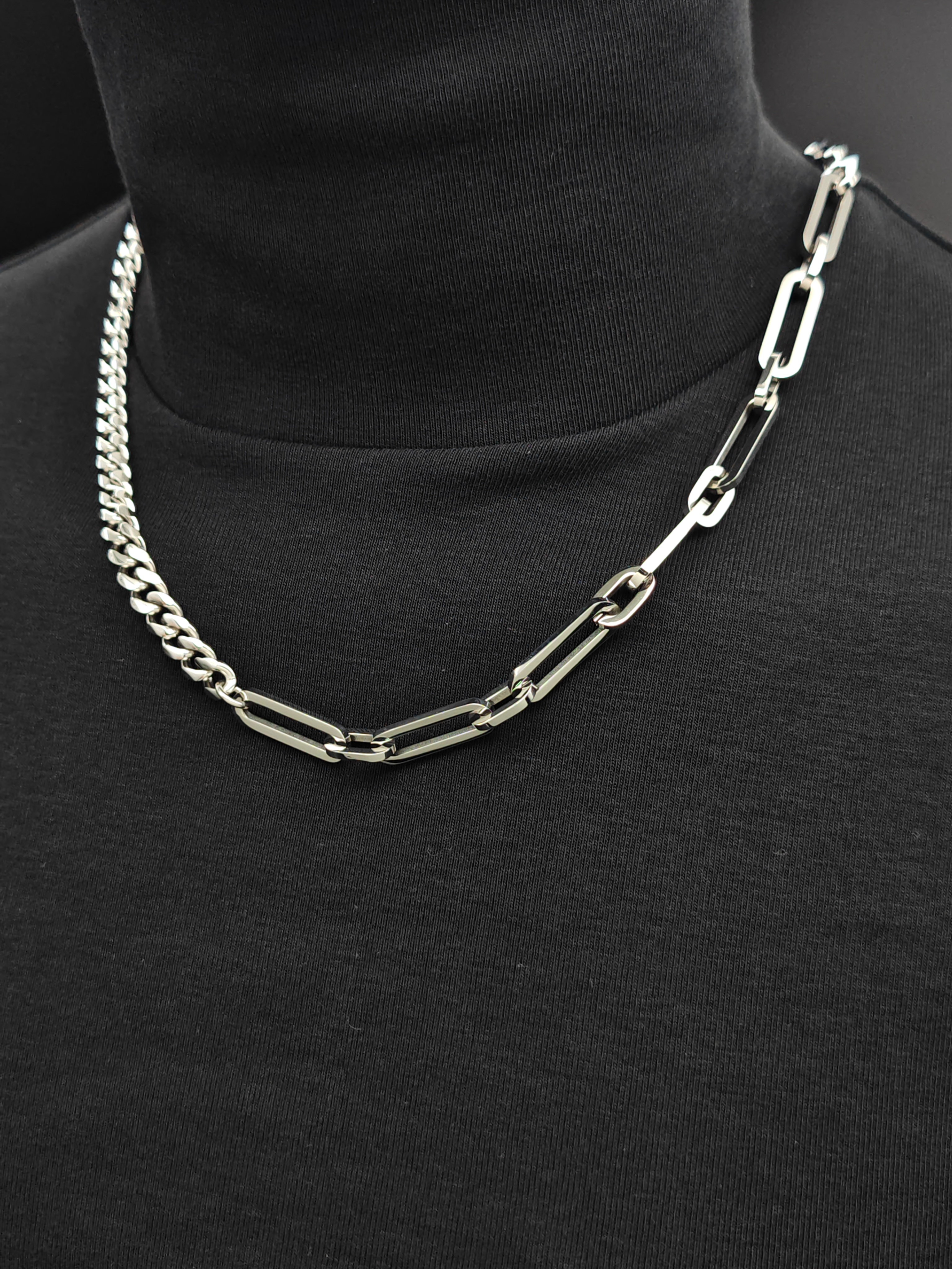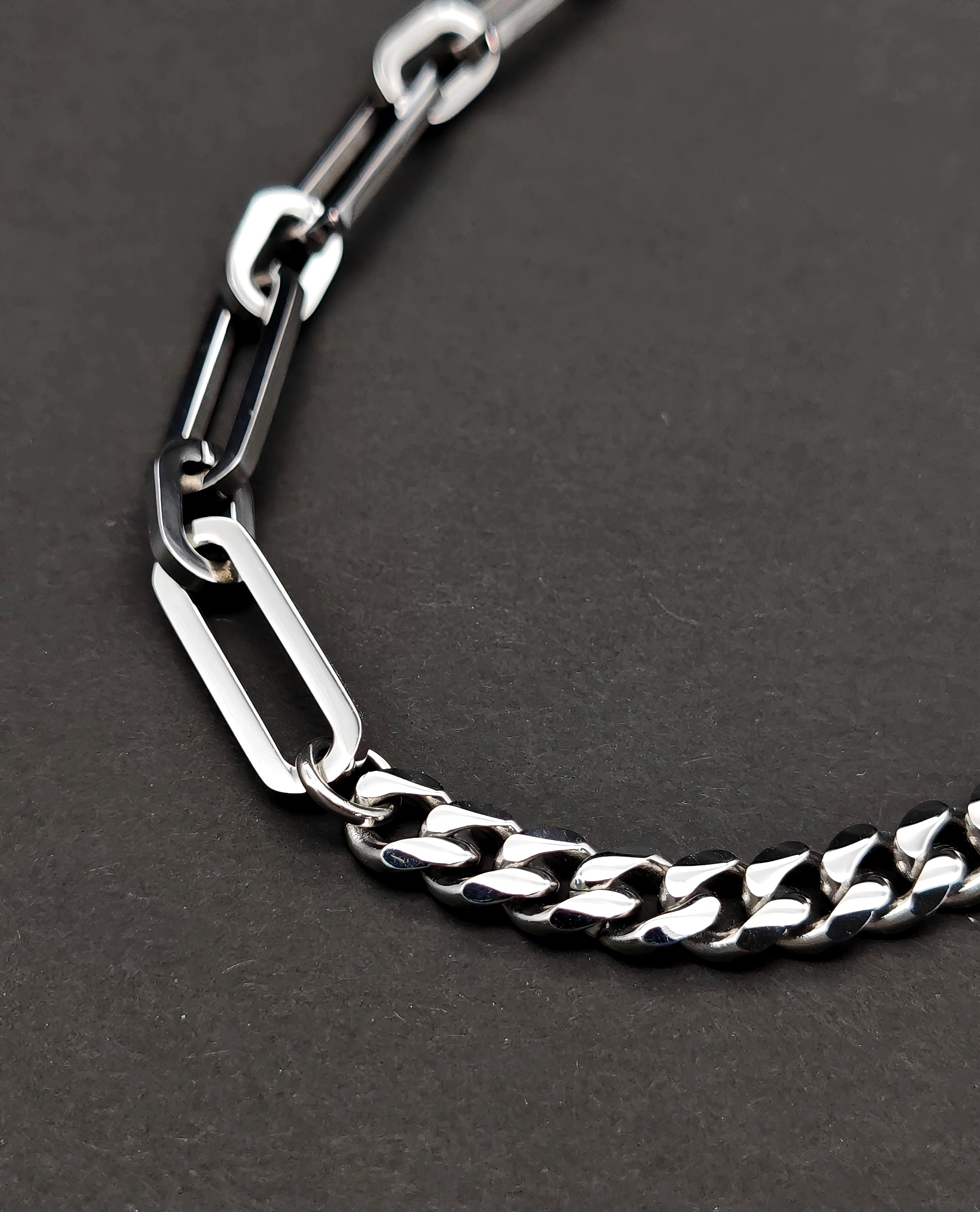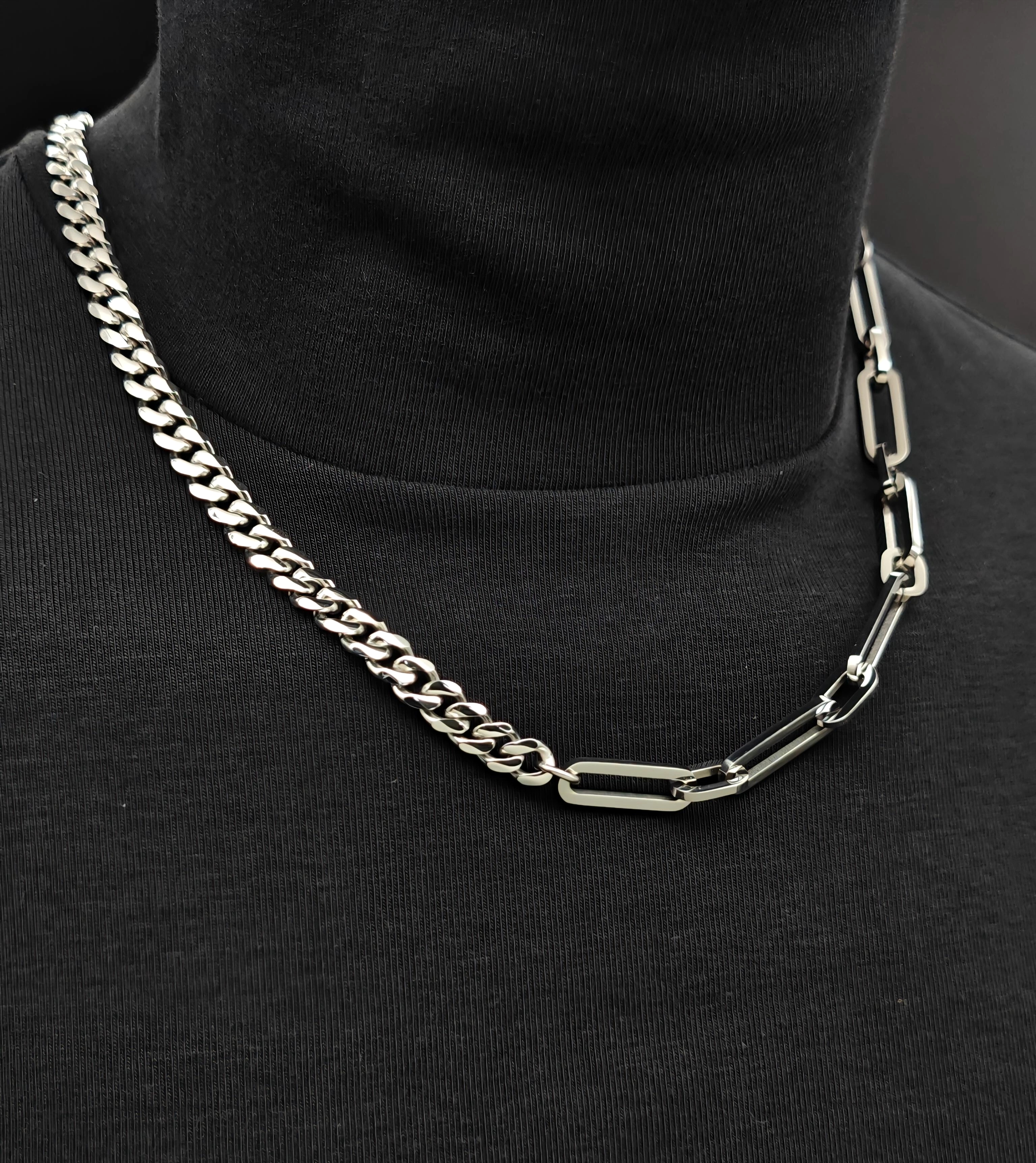 8mm鋼色長橢圓古巴鏈混合頸鏈(STL-N522)8mm Mixed Cuban & Oval Chain Necklace